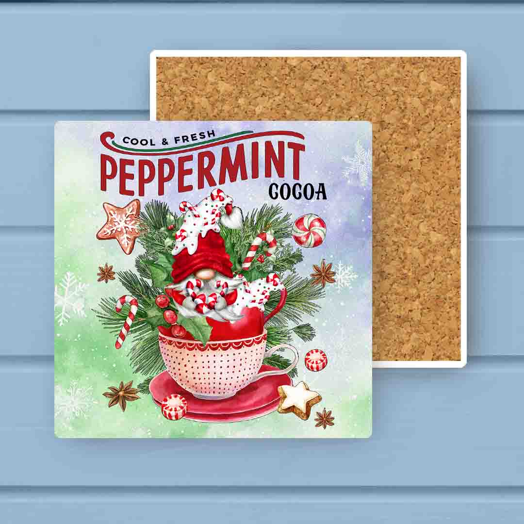 Gnome Peppermint Cocoa Teacup Christmas Stone Coaster