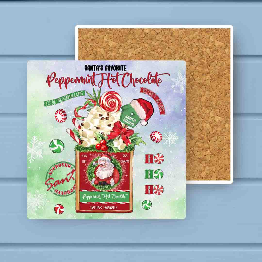 Santa's Peppermint Hot Cocoa Christmae Stone Coaster