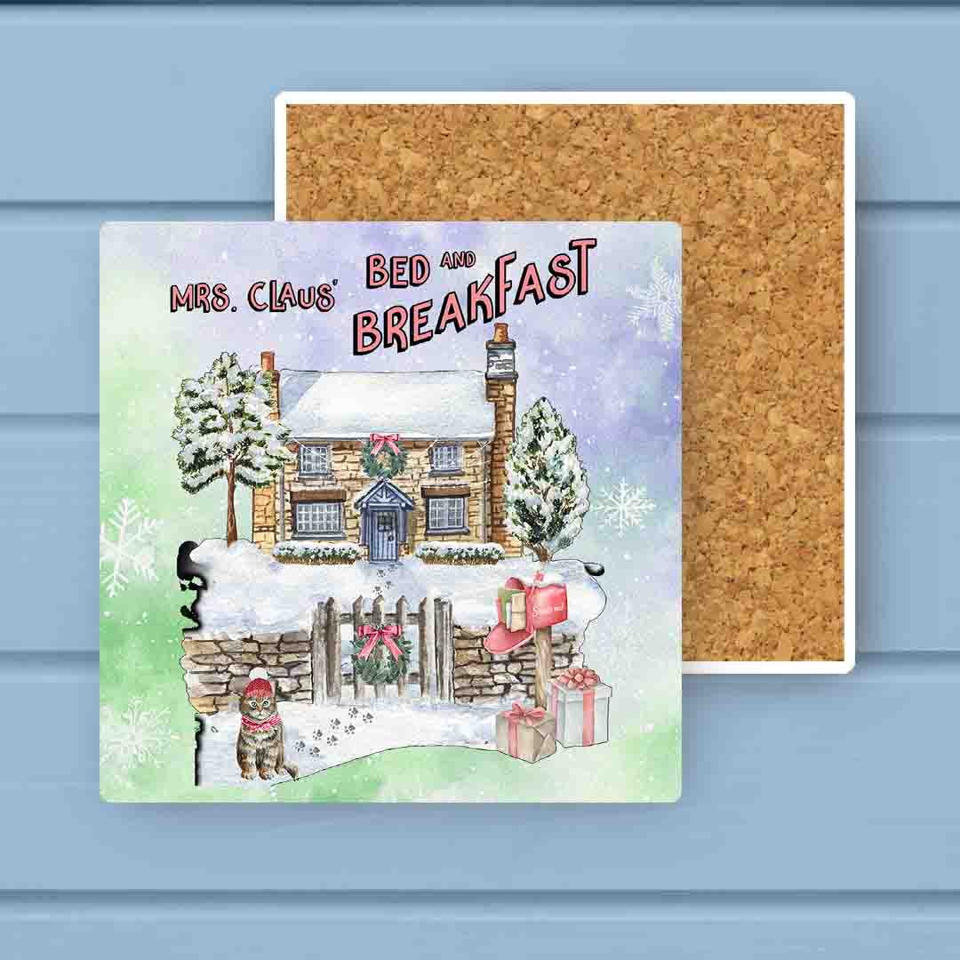 Mrs Claus' Bed & Breakfast Christmas Absorbant Stone Coaster