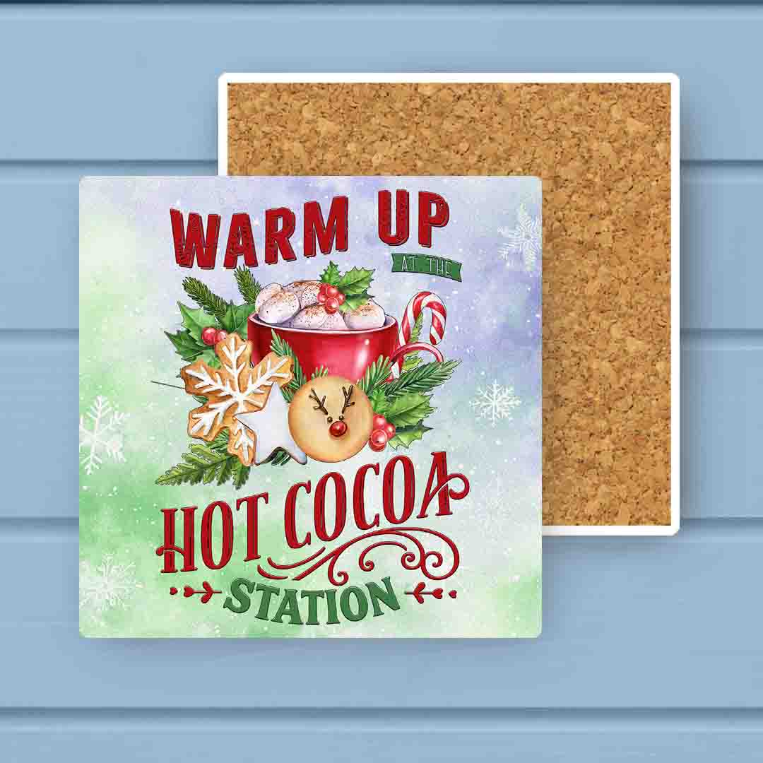 Warm Up Hot Cocoa Cookie Station Christmas Stone Coaster