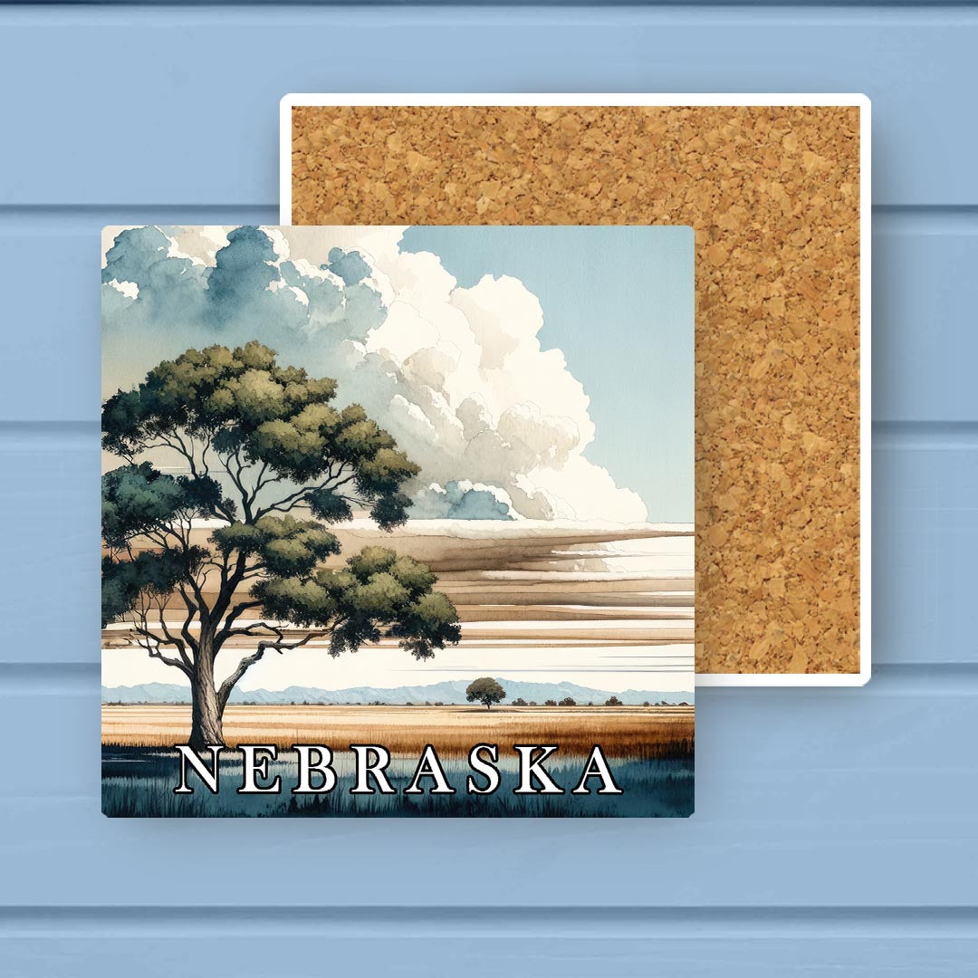 Nebraska Landmark & Landscape Watercolor Stone Coaster