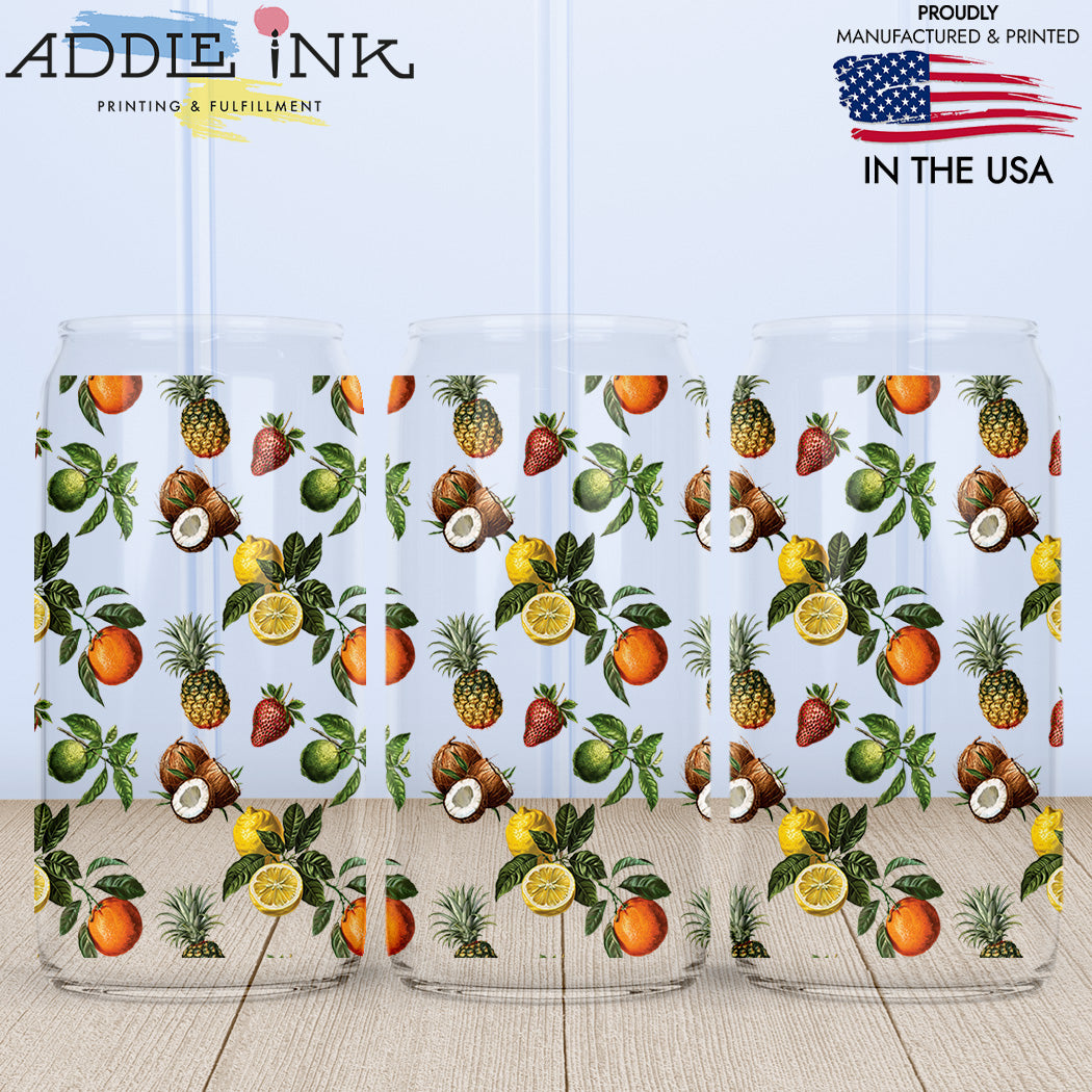 Tropical Fruit Pattern 16oz Libbey Beer Can Glass