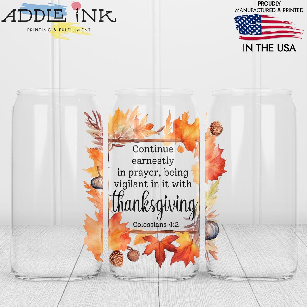 Continue Earnestly in Prayer…Thanksgiving Fall Can Glass