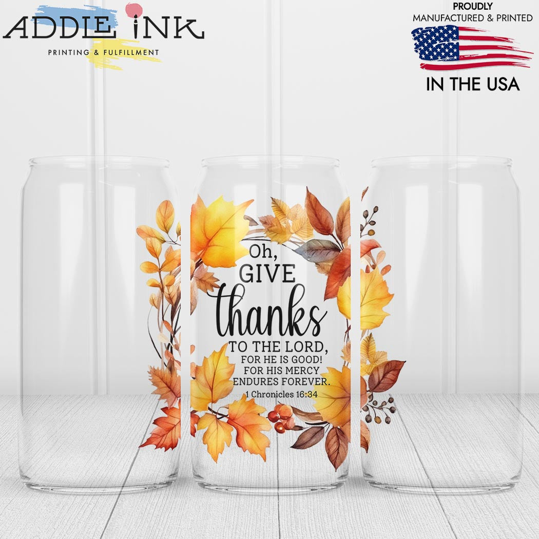 Oh Give Thanks to the LORD Autumn Wreath Can Glass