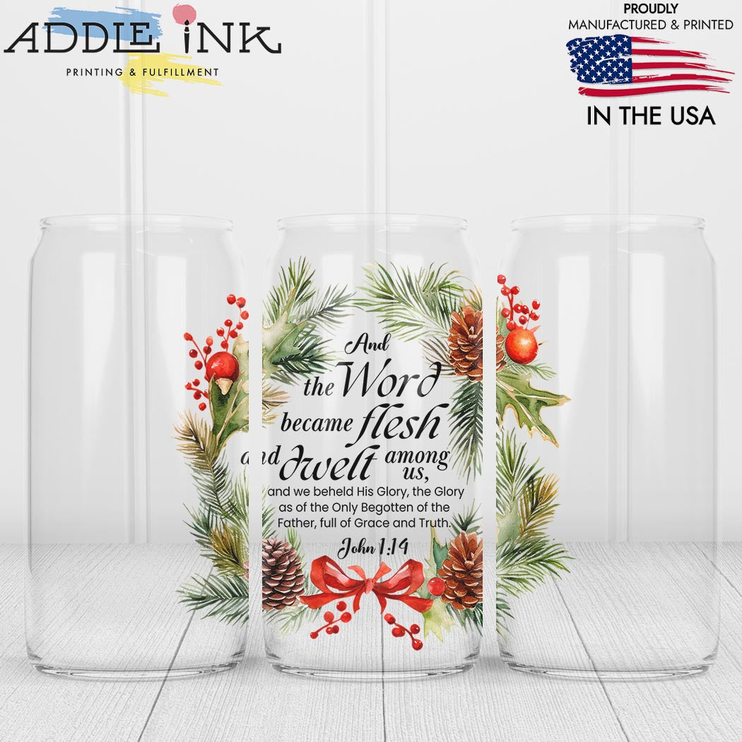 The WORD Became Flesh Christmas 16oz Libbey Beer Can Glass