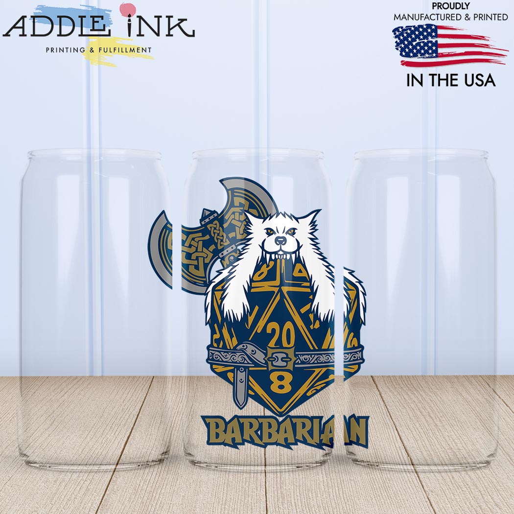 Barbarian D20 Fantasy RPG 16oz Libbey Beer Can Glass