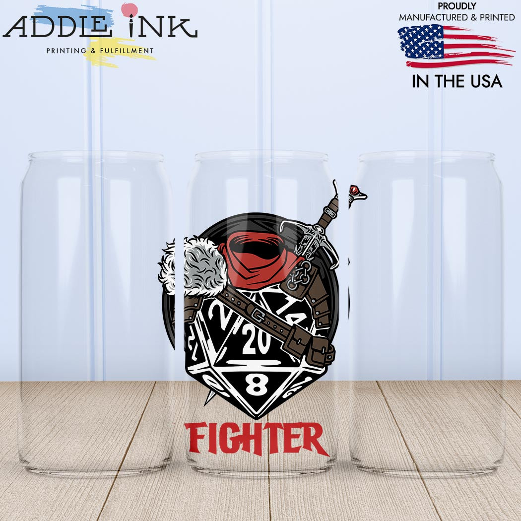 Fighter D20 Fantasy RPG 16oz Libbey Beer Can Glass
