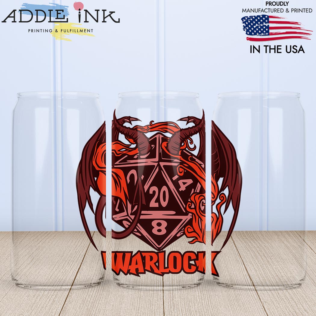Warlock D20 Fantasy RPG 16oz Libbey Beer Can Glass