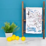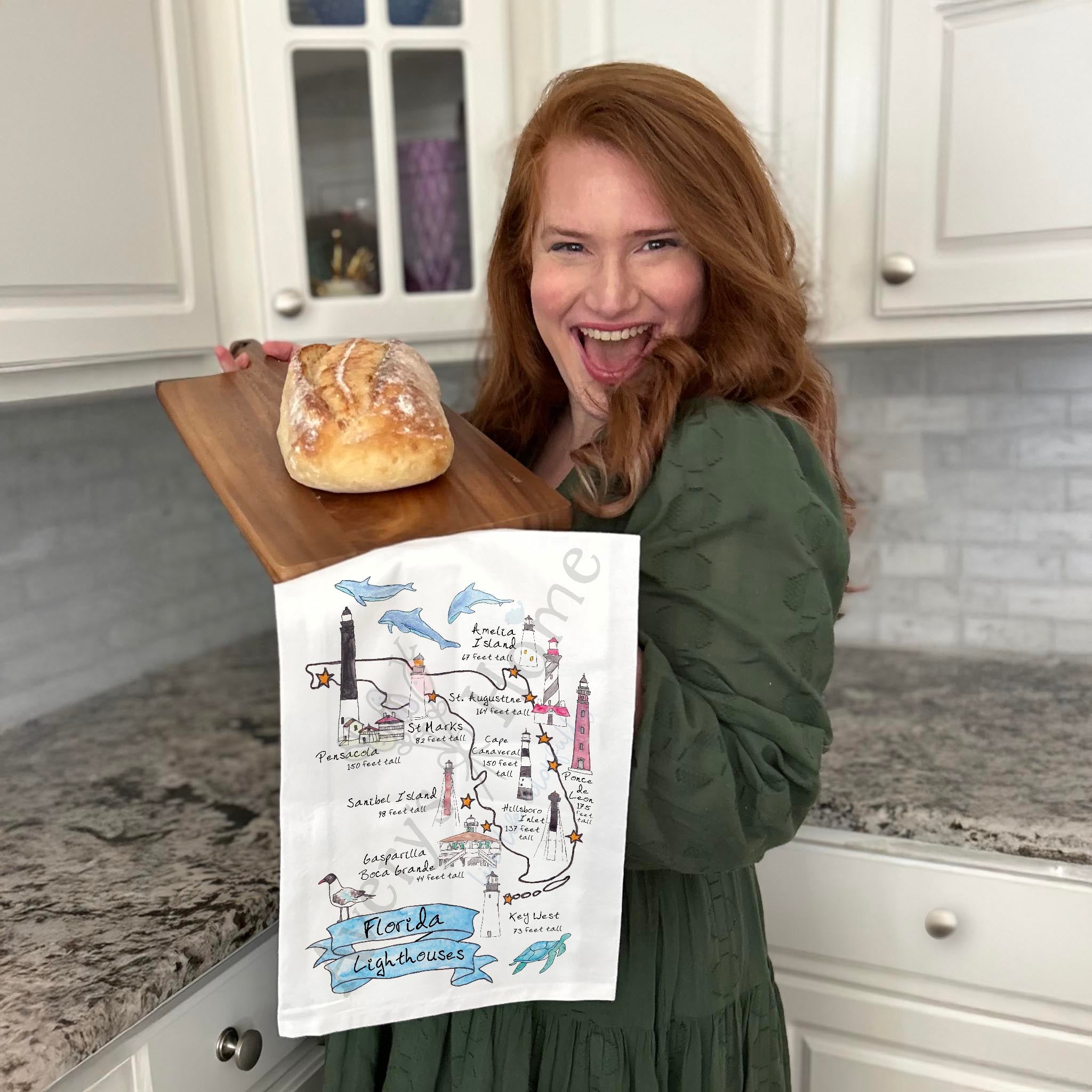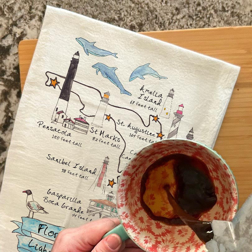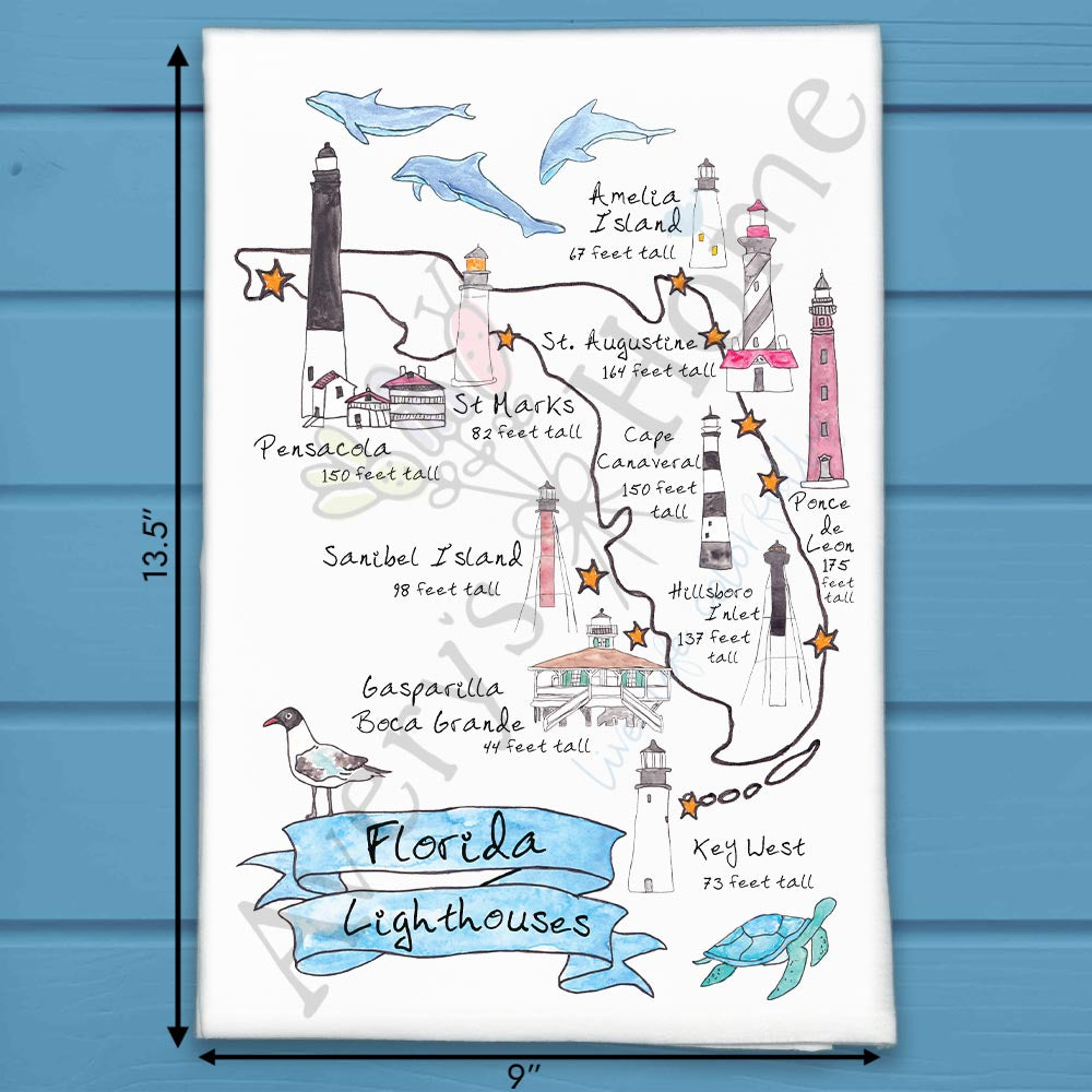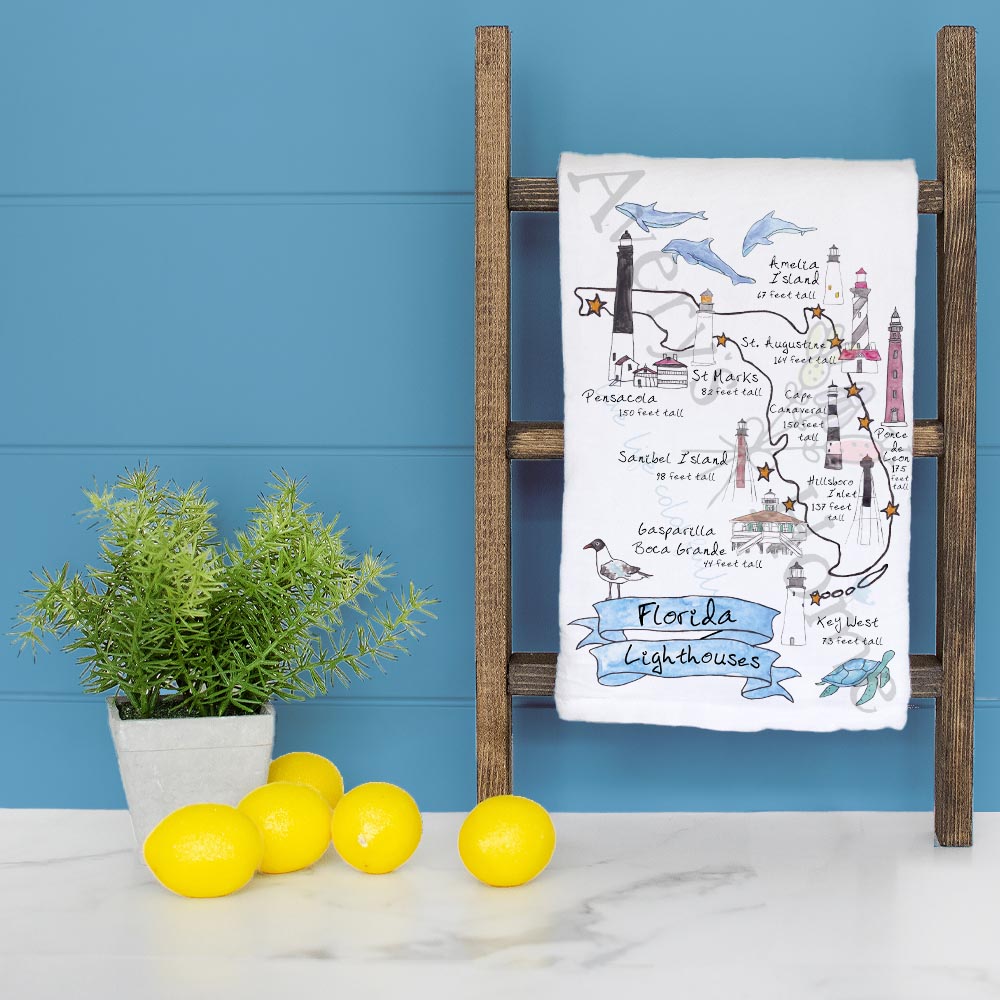 florida lighthouse towel, state map decor, nautical souvenir, flour sack dish towel, hand towel, coastal travel gift, florida kitchen art