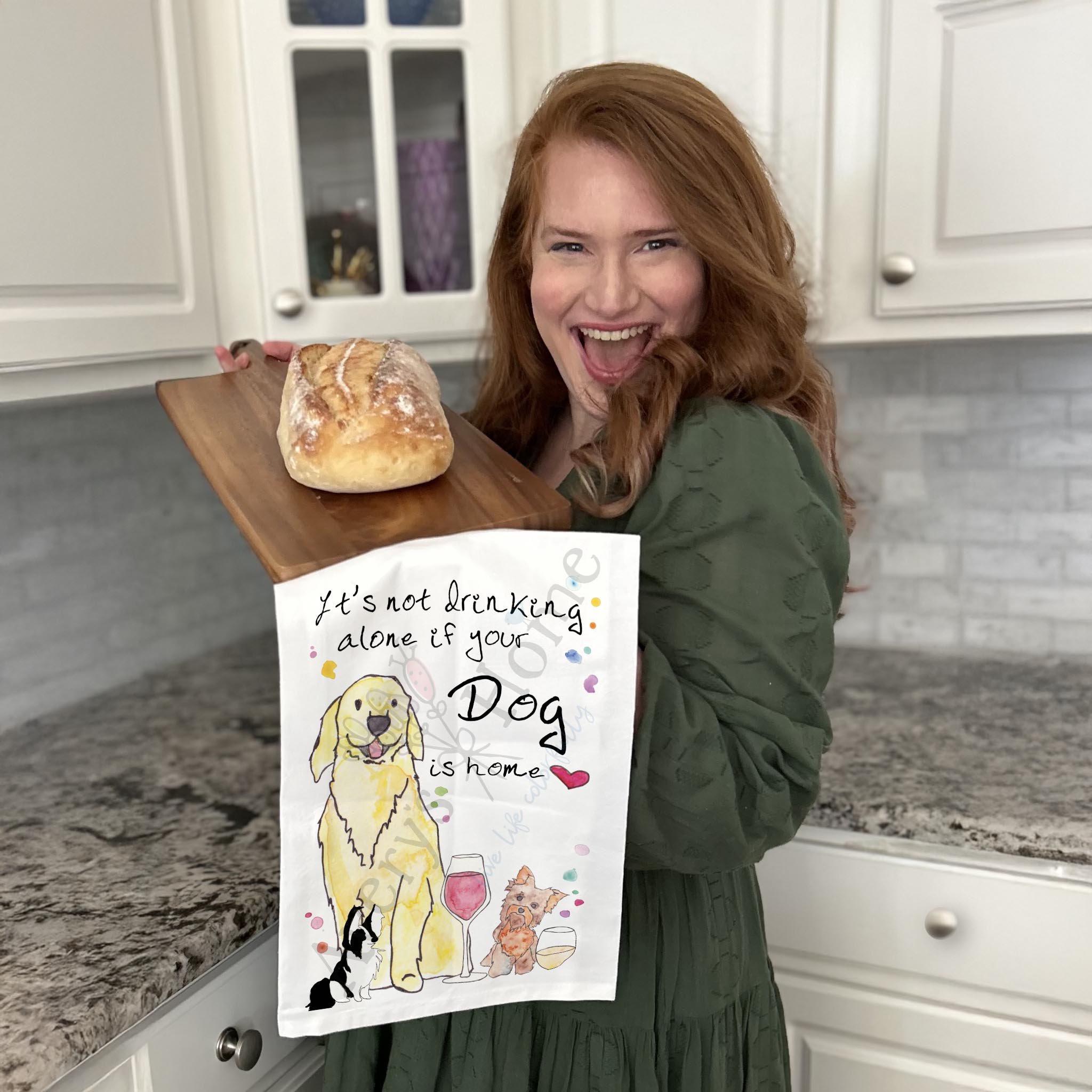 Dog Drinking Buddy Tea Towel – Funny Bar Decor – Avery's Home