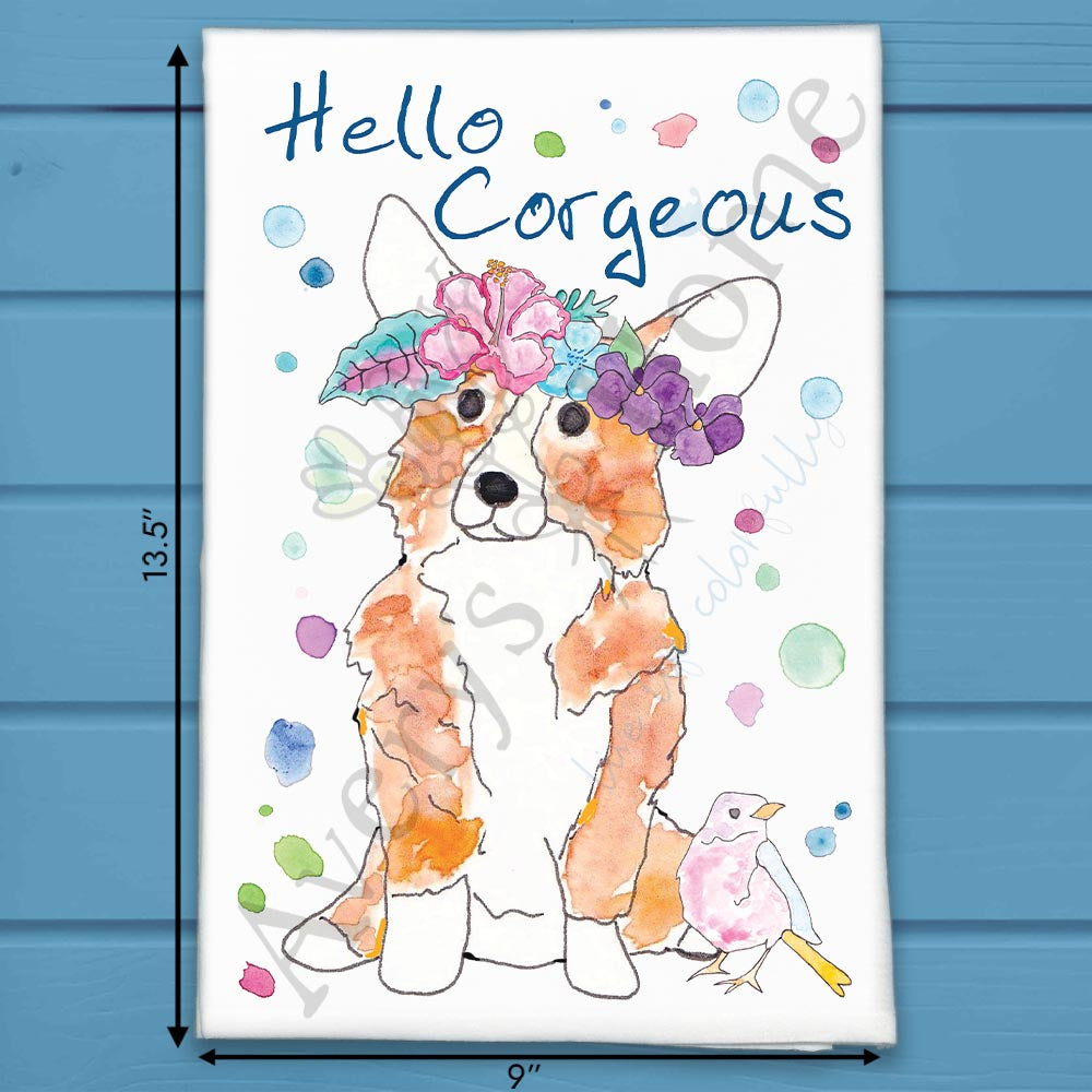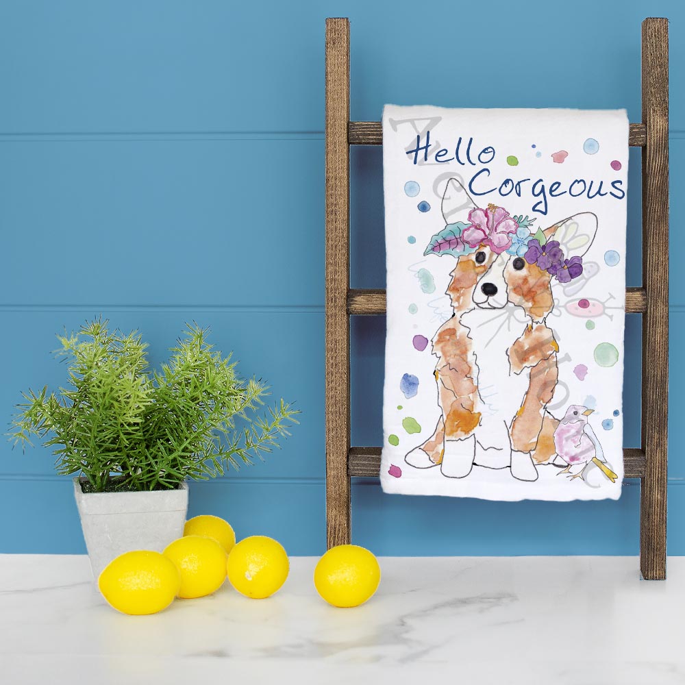 Hello Corgeous Tea Towel – Summer Dog Lover Gift – Avery's Home