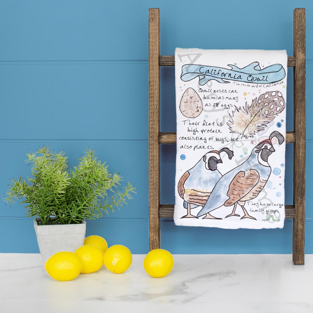 California Quail Bird Facts – State Bird Decor Tea Towel – Avery's Home