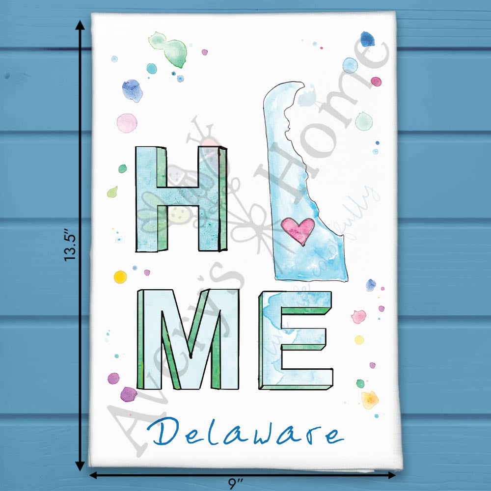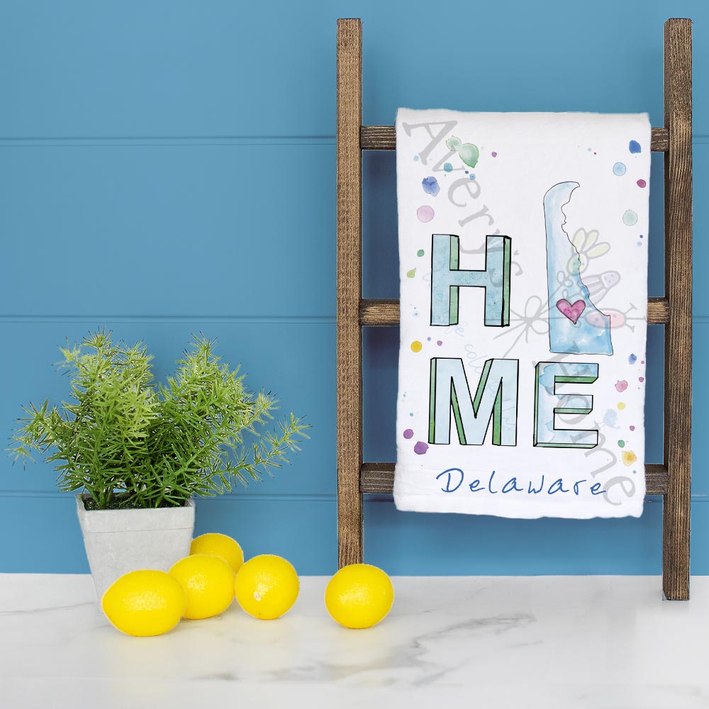 HOME in Delaware Tea Towel – Cozy Coastal Charm