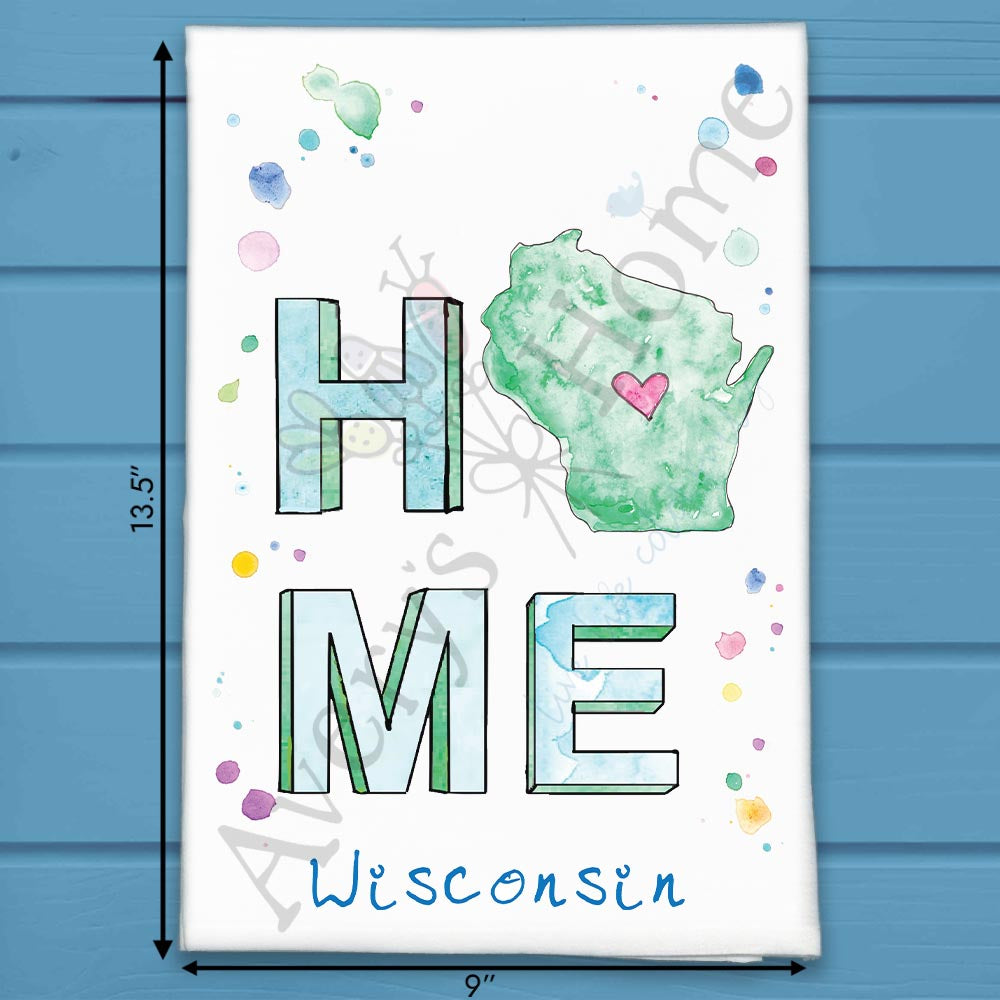 HOME in Wisconsin Tea Towel – Cheese, Lakes & Love