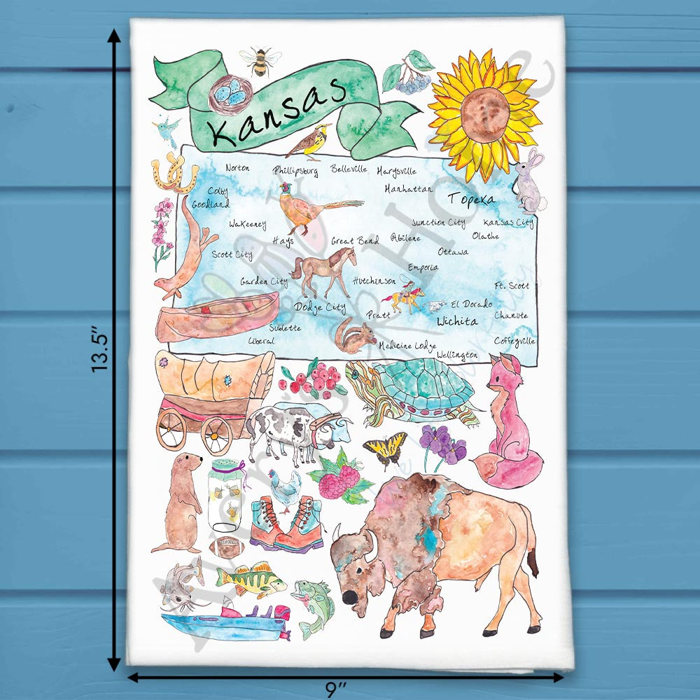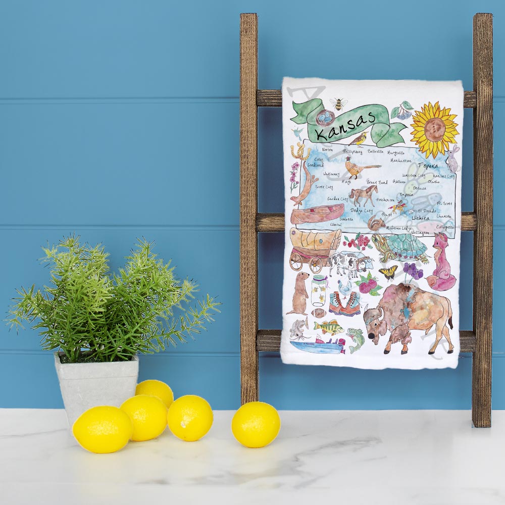 kansas state map towel, sunflower state decor, midwest kitchen tea towel, flour sack dish towel, hand towel, prairie home gift