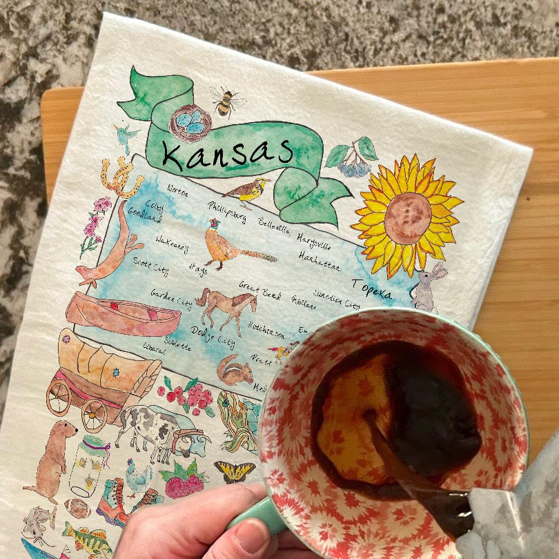 Kansas Map Tea Towel – Fields, Storms & Sunflowers