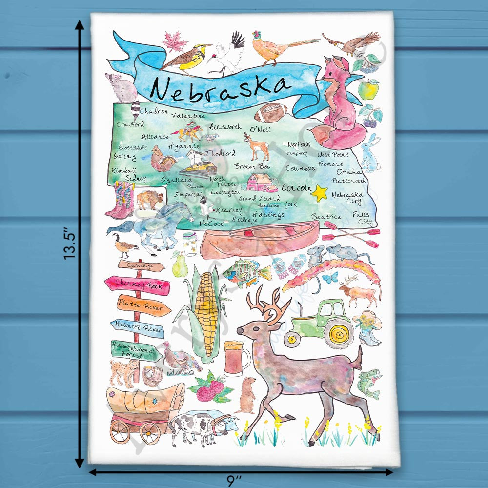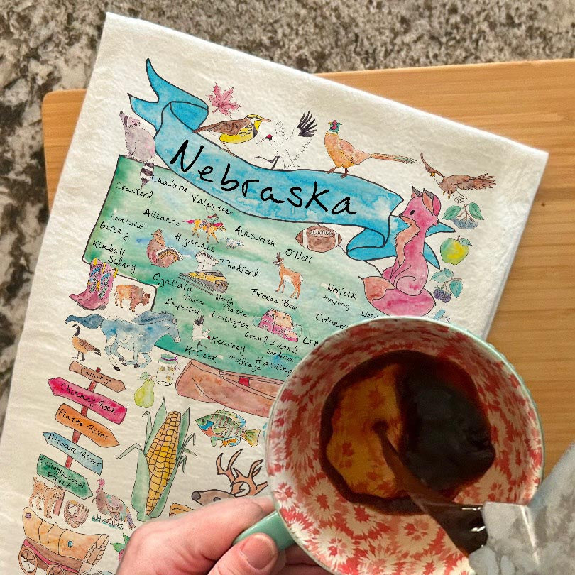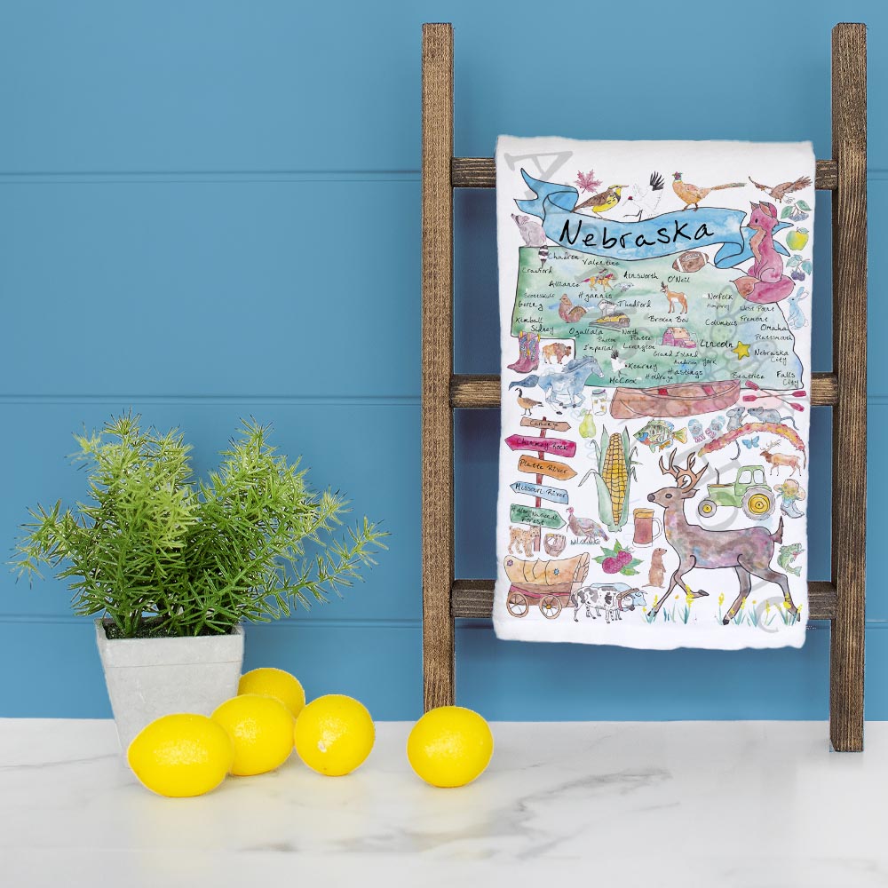 Simple, strong, and rich in heart—this Nebraska towel brings fields of gold and community warmth to life. Perfect for farm kitchens, prairie homes, or Husker state gifting.