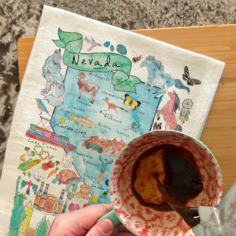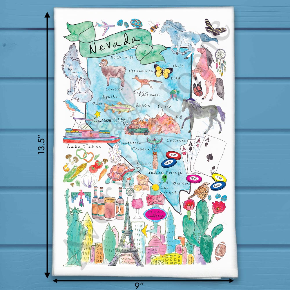 nevada state map towel, desert southwest decor, vegas kitchen tea towel, flour sack dish towel, hand towel, scenic drive gift