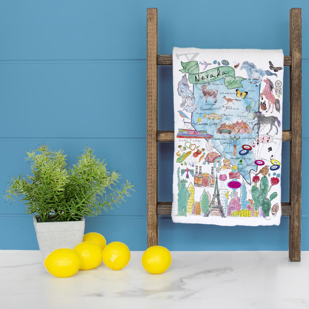 With desert trails, dazzling lights, and canyon curves, this Nevada towel blends outdoor freedom and Vegas flair. Great for desert dwellers, road trippers, or kitchens with Southwest soul.