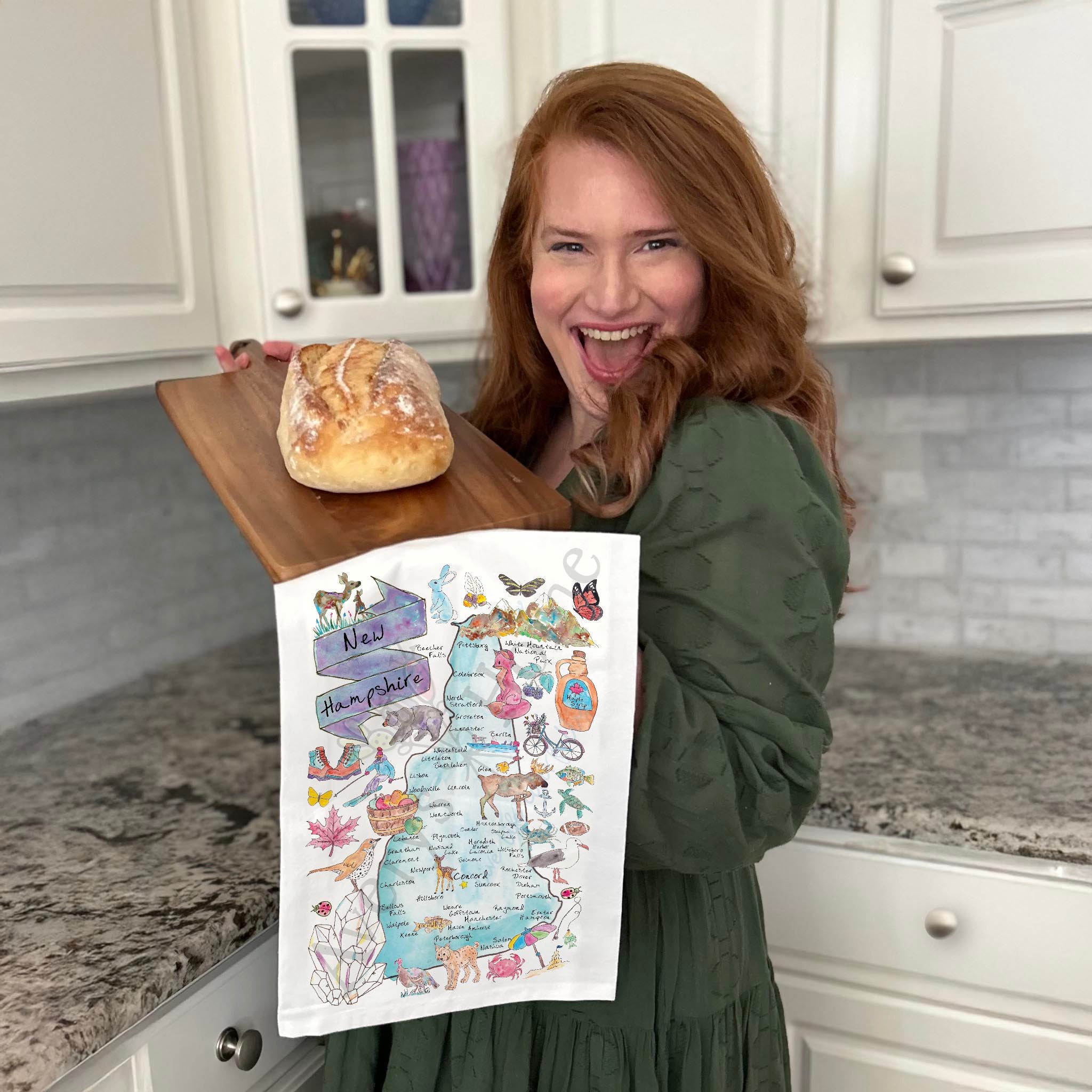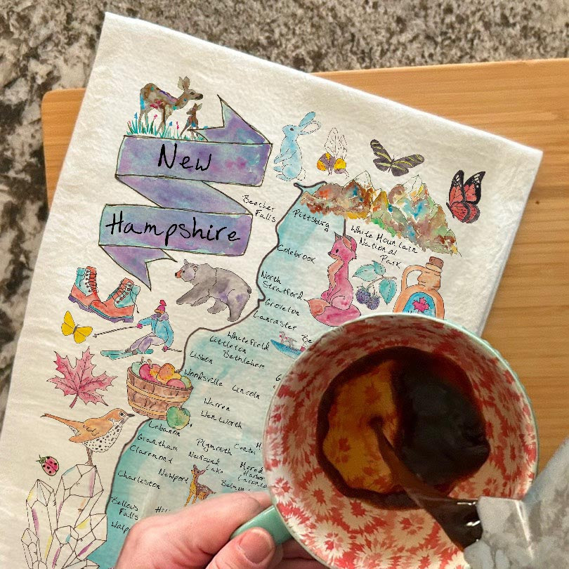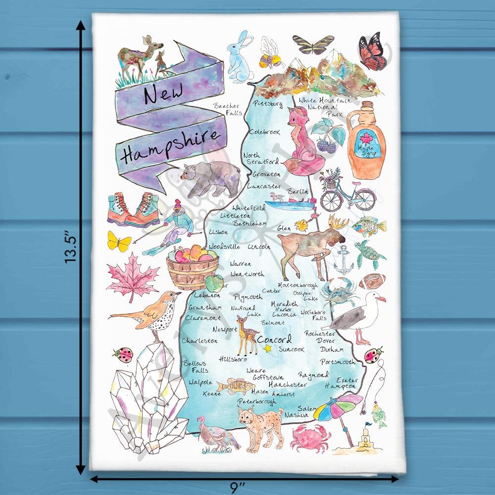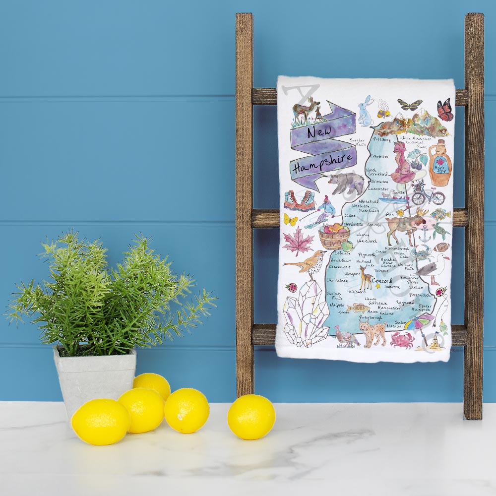 Covered bridges, fall colors, and snowy peaks—this New Hampshire towel is a tribute to the Granite State’s rugged beauty. A lovely kitchen accent for leaf peepers, hikers, or those who know maple syrup tastes better here.
