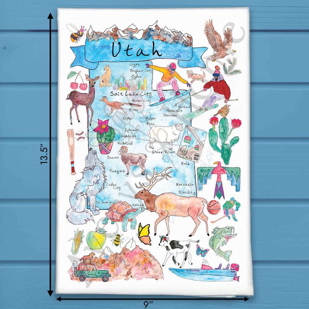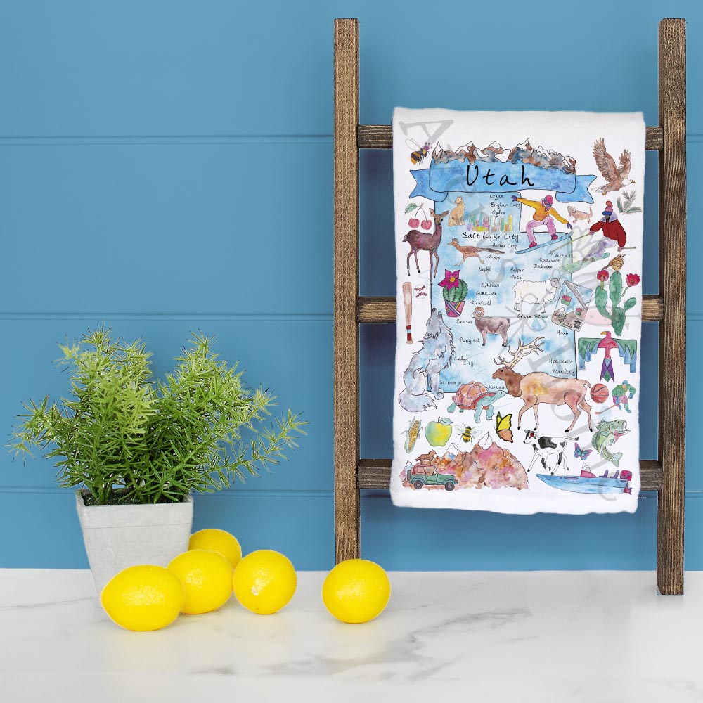 utah state map towel, arches national park decor, southwest adventure tea towel, flour sack dish towel, hand towel, hiking gift