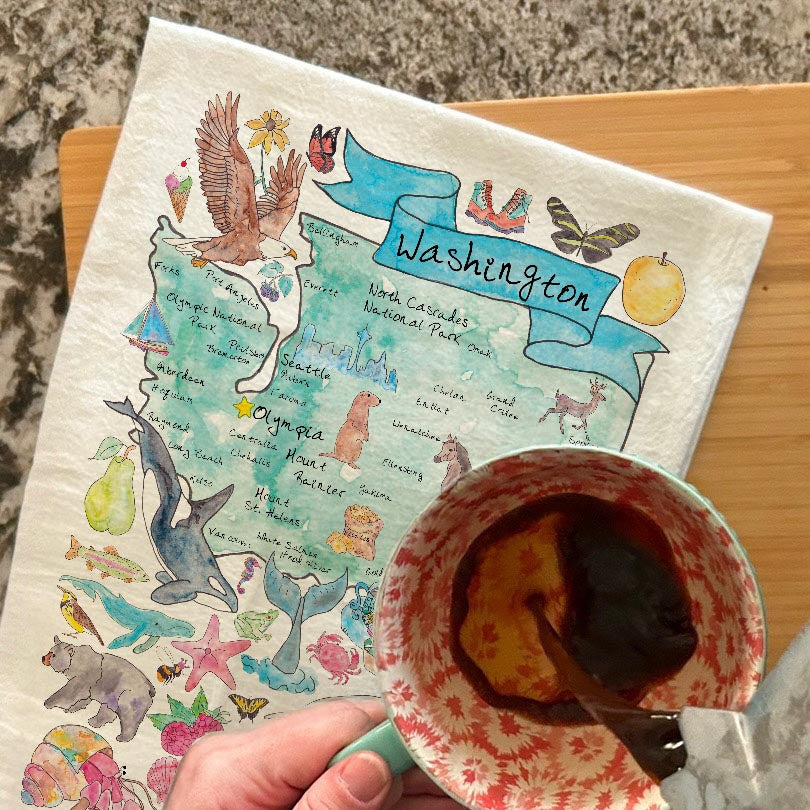 Washington Map Tea Towel – Coffee, Cascades & Coast