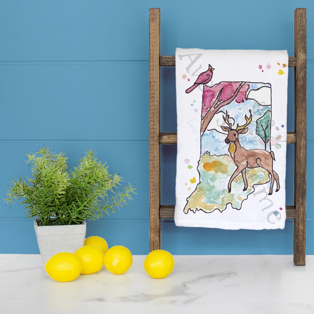 indiana state towel, heartland kitchen decor, midwest farm tea towel, flour sack dish towel, hand towel, hoosier pride gift