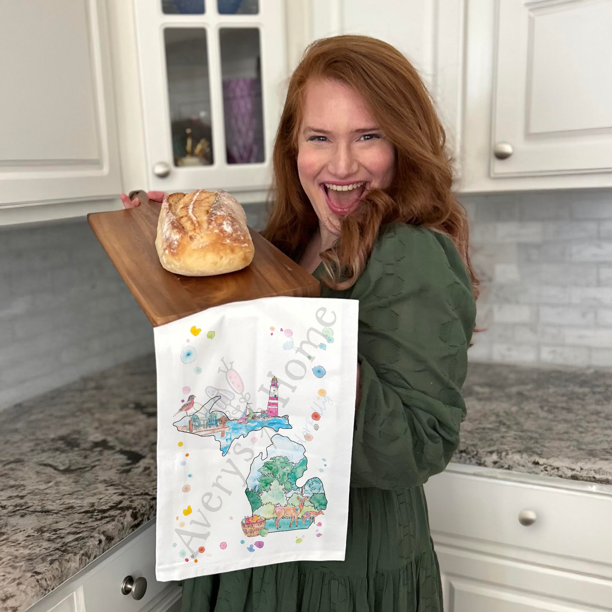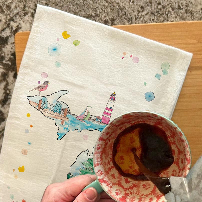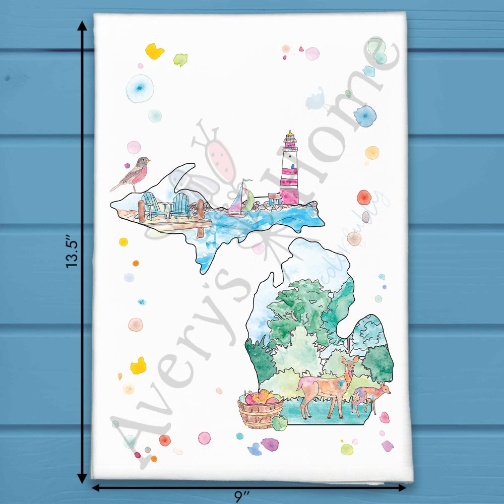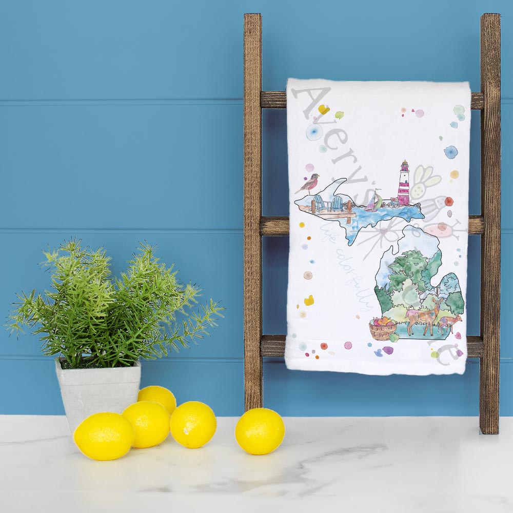 Showcasing everything from lighthouses to lake breezes, this Michigan towel celebrates mitten pride and Great Lakes beauty. A cozy choice for cabins, cottages, and up-north kitchens.