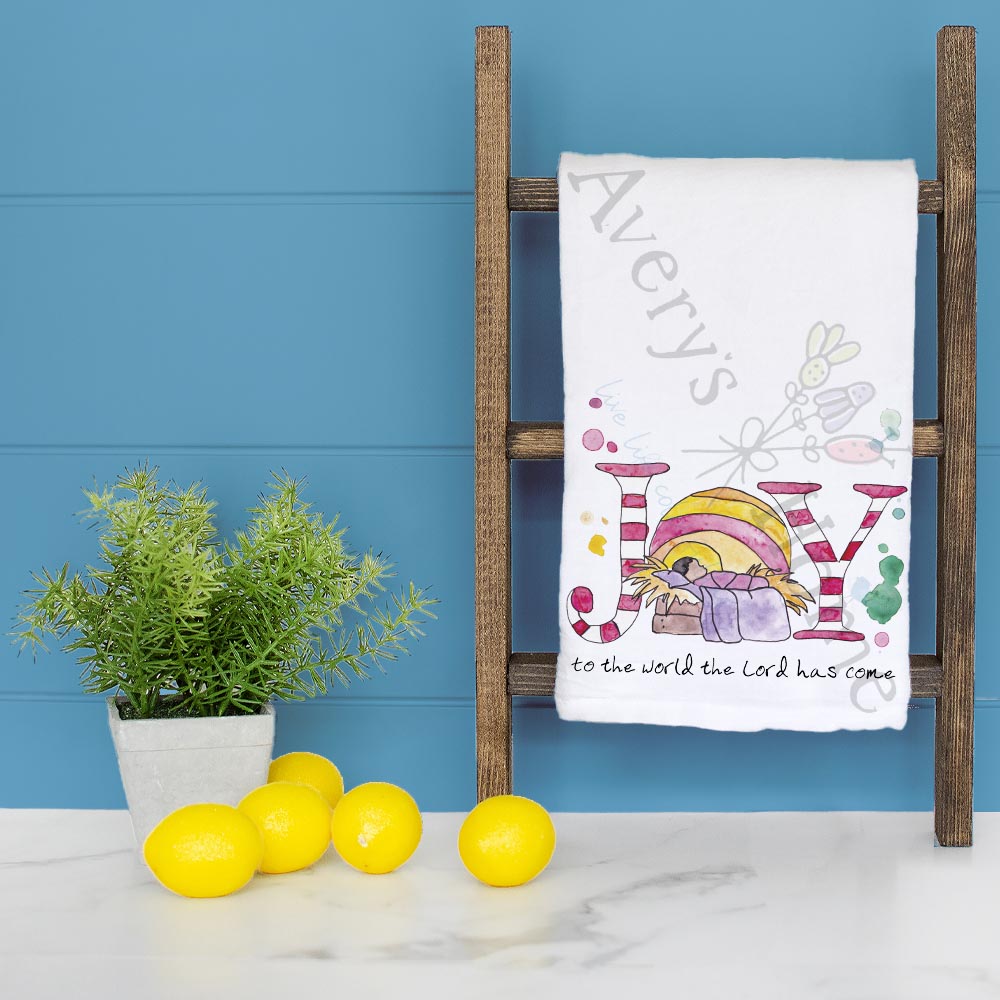 joy in the season towel, peaceful holiday decor, winter sentiment tea towel, flour sack dish towel, hand towel, heartfelt christmas gift