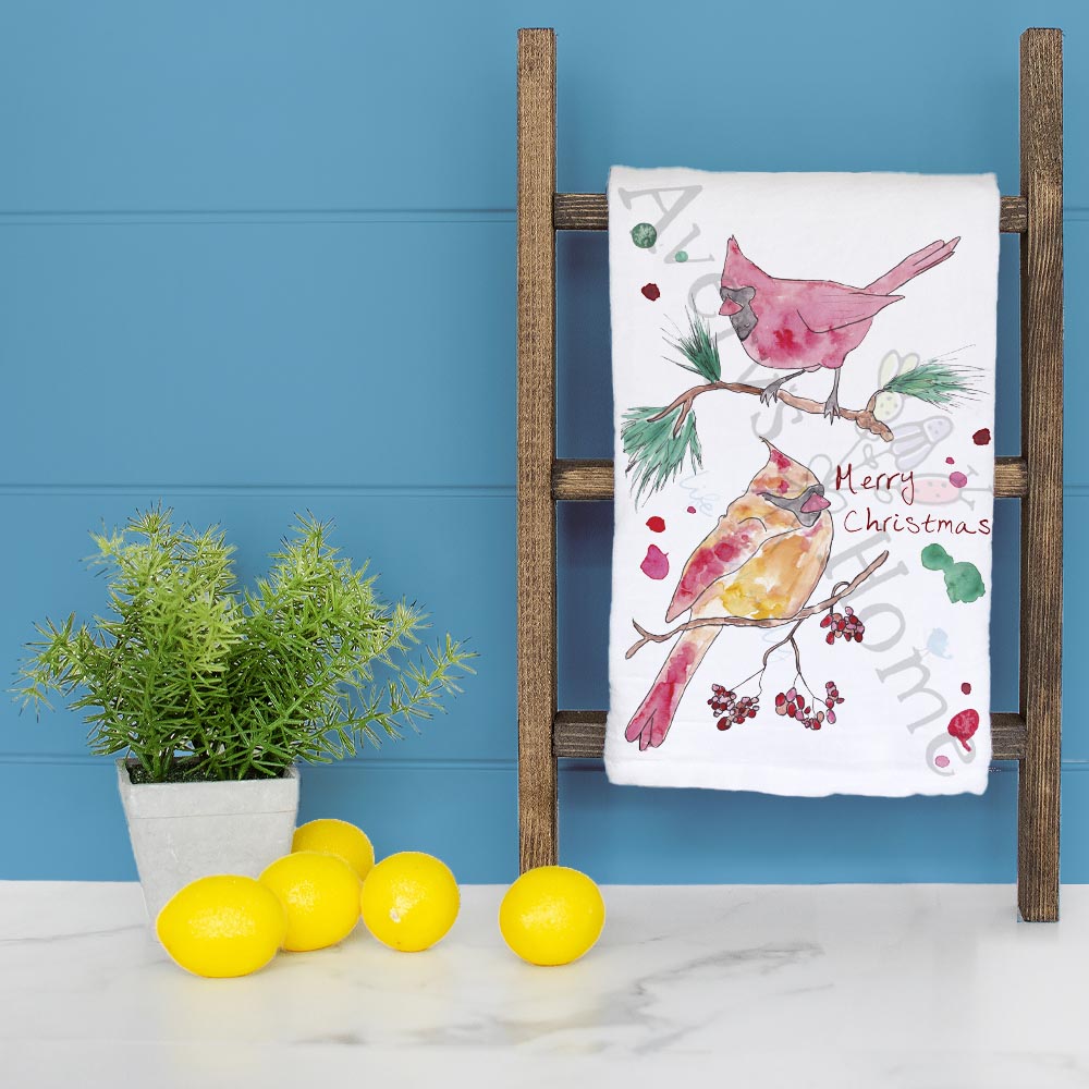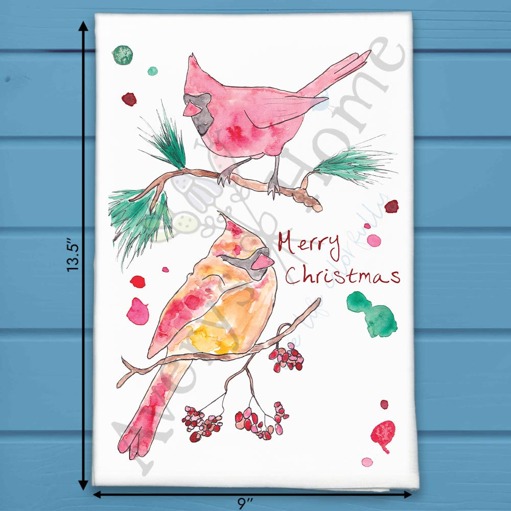 Merry Christmas Cardinal Tea Towel – Peaceful Bird Scene