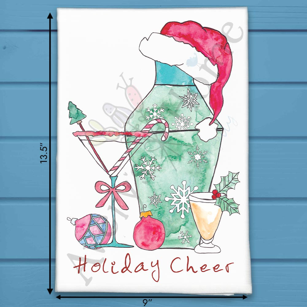 holiday cheer towel, christmas cocktail decor, bar cart tea towel, flour sack dish towel, hand towel, festive drink kitchen gift