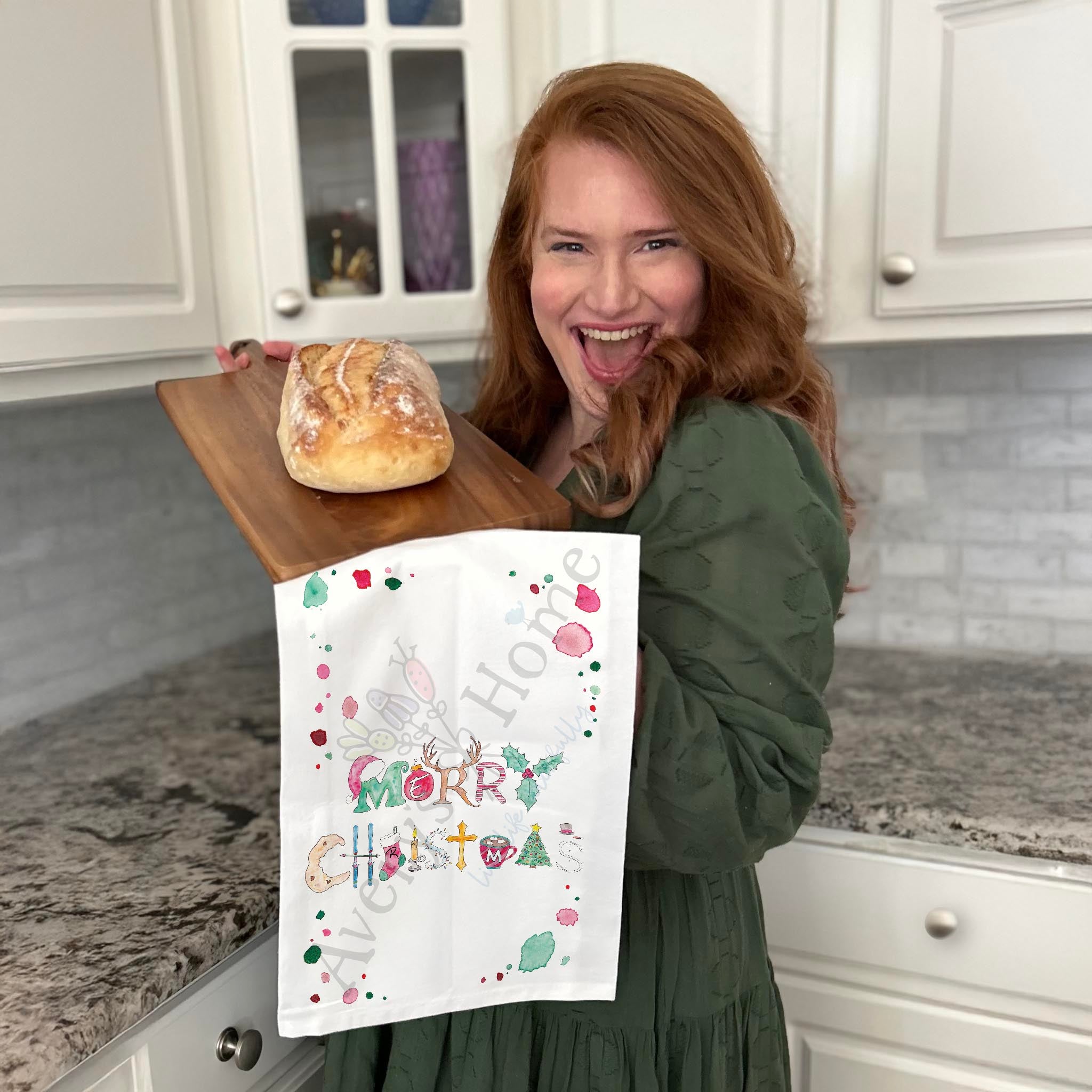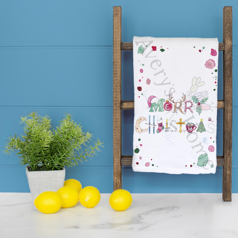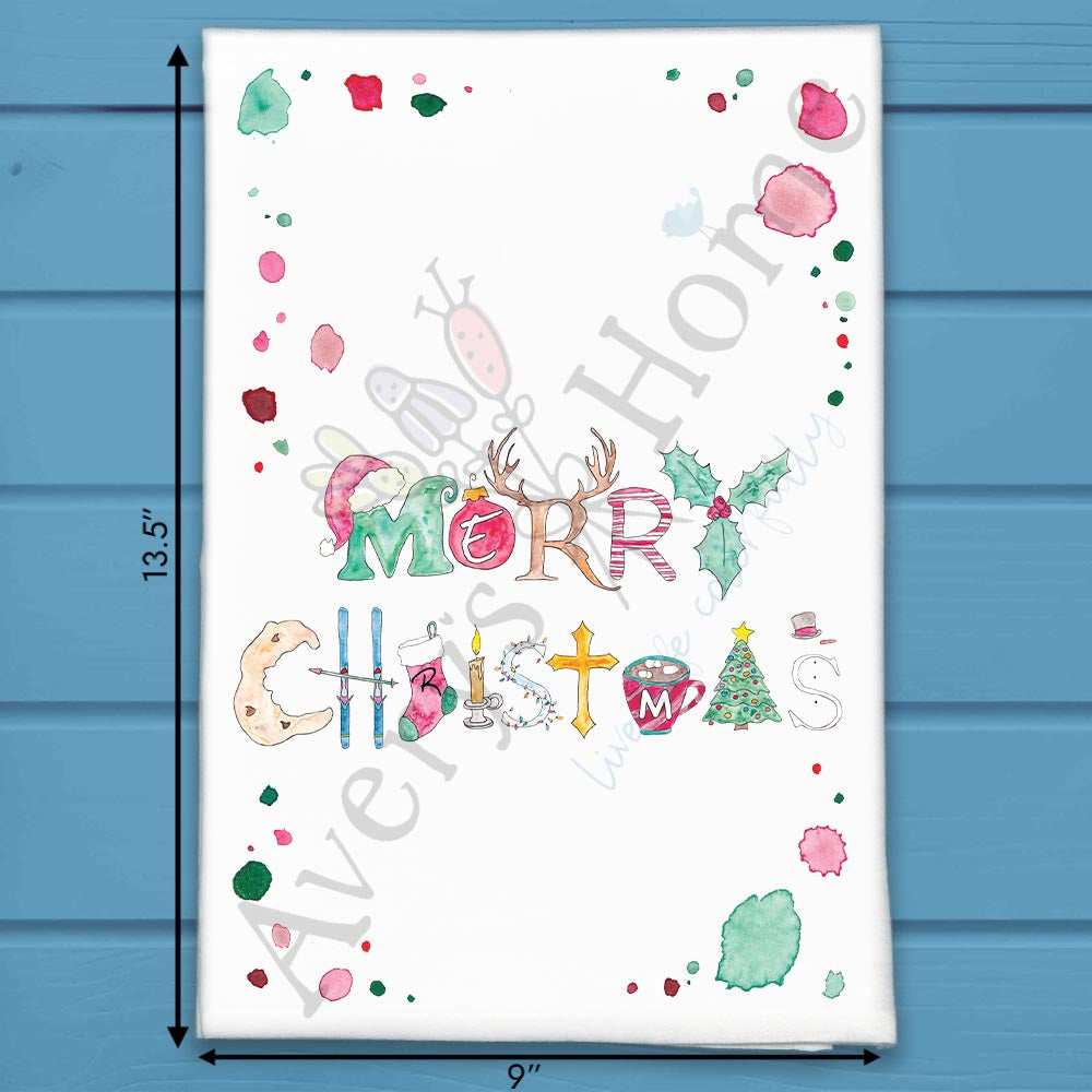 merry christmas towel, traditional holiday kitchen decor, festive message tea towel, flour sack dish towel, hand towel, christmas gift