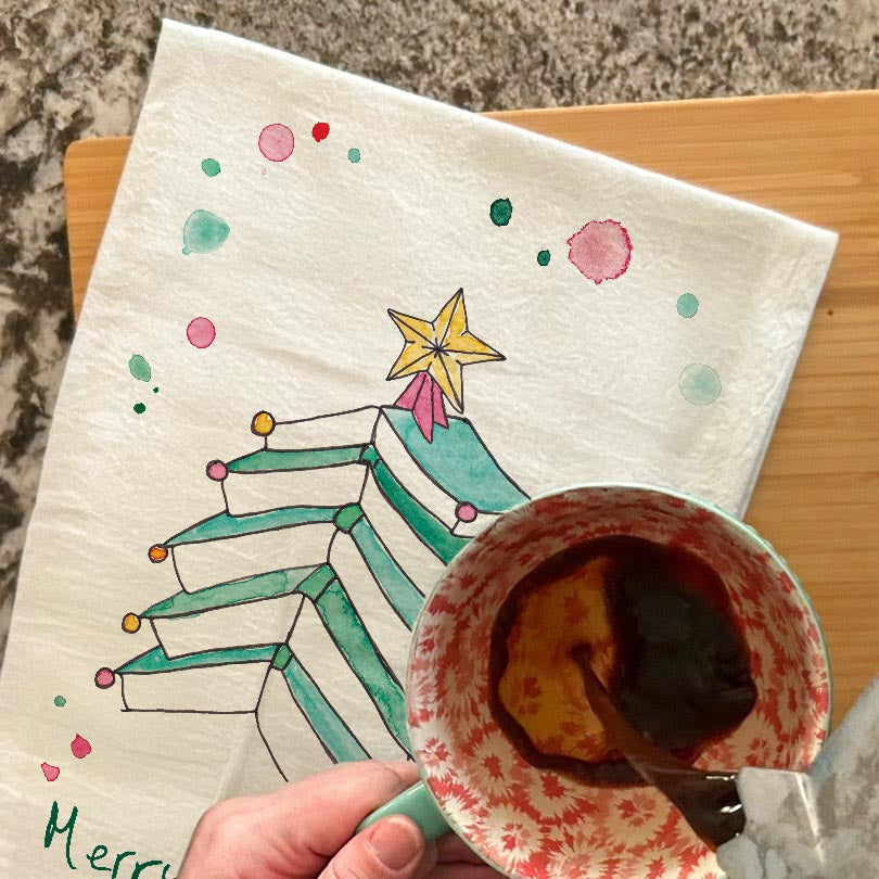 Book Christmas Tree Tea Towel – Cozy & Literary