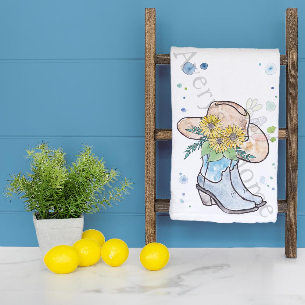 cowgirl tea towel, floral western decor, ride like a cowgirl gift, flour sack dish towel, hand towel, ranch life kitchen