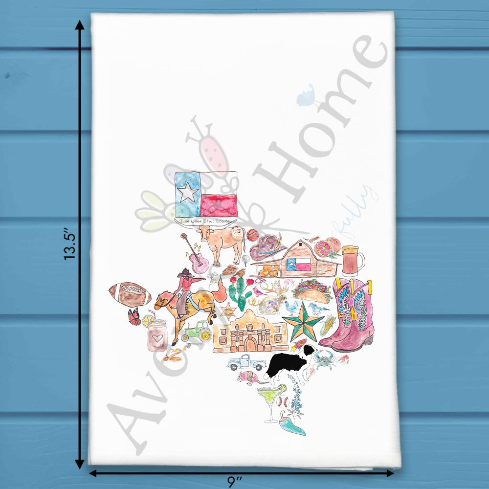 Texas State Icons Tea Towel – Longhorns & Love