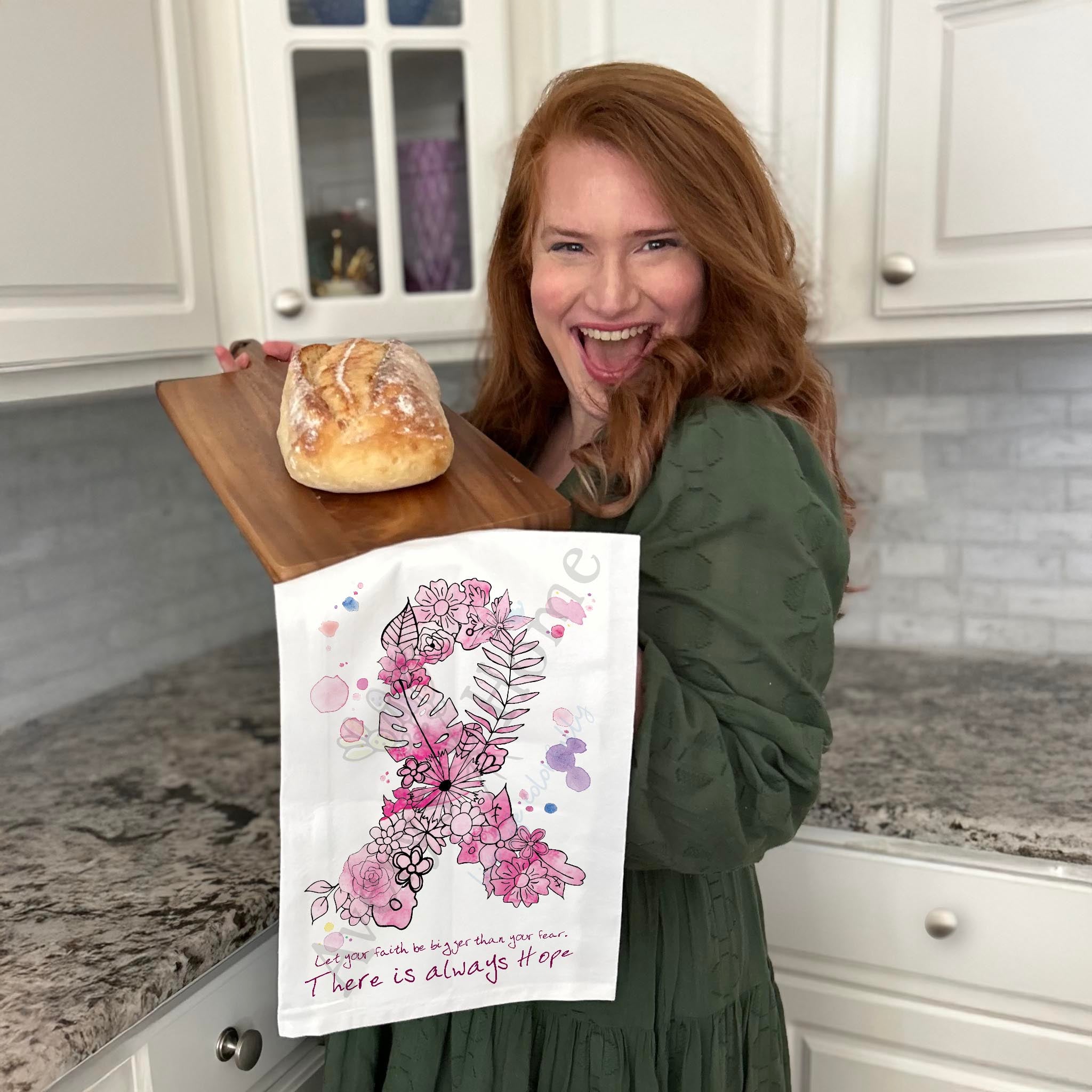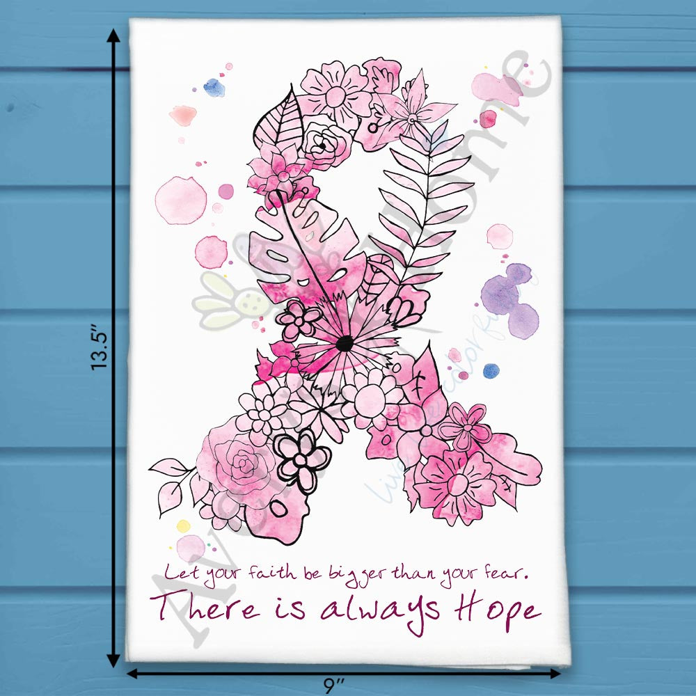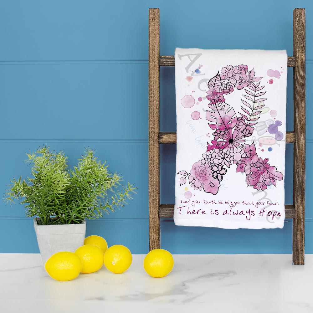 breast cancer towel, awareness ribbon kitchen decor, survivor gift tea towel, flour sack dish towel, hand towel, hope strength courage