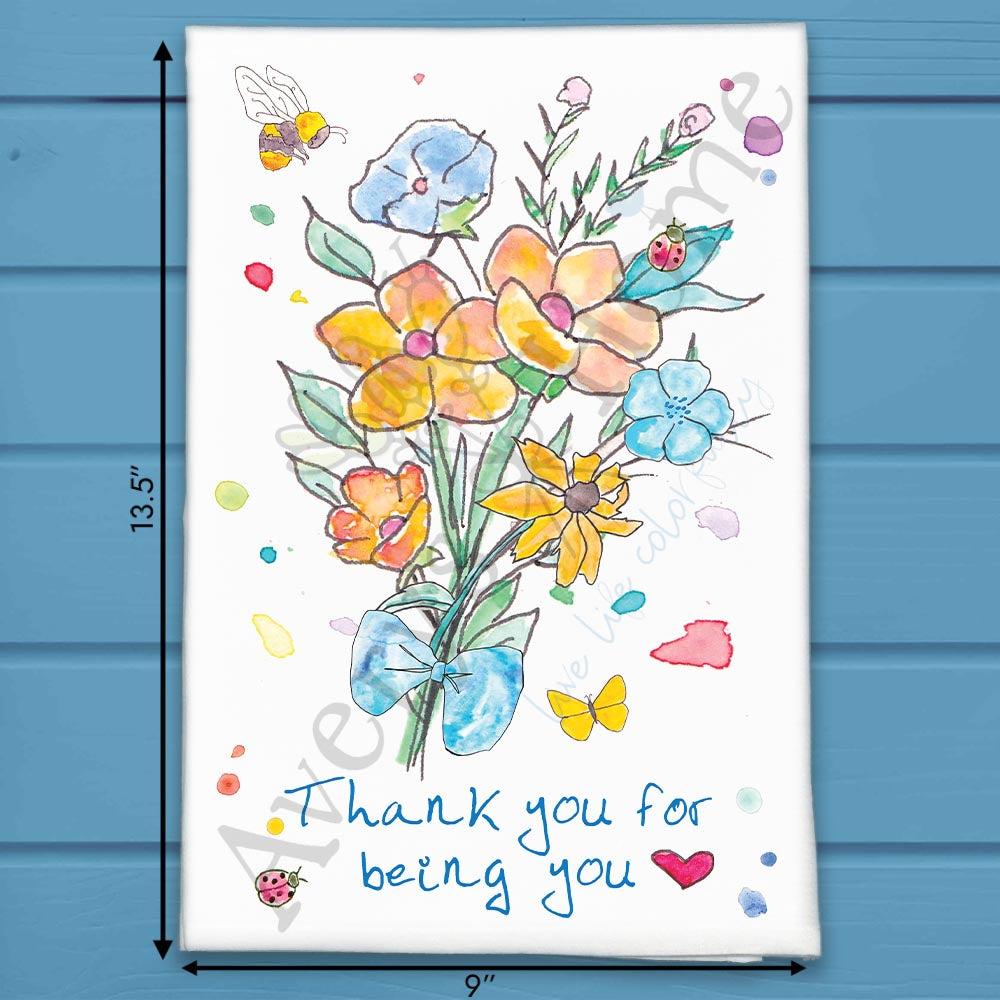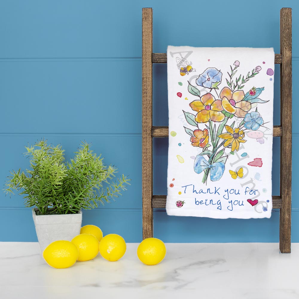 thank you tea towel, friendship gift decor, floral appreciation towel, flour sack dish towel, hand towel, mentor gift