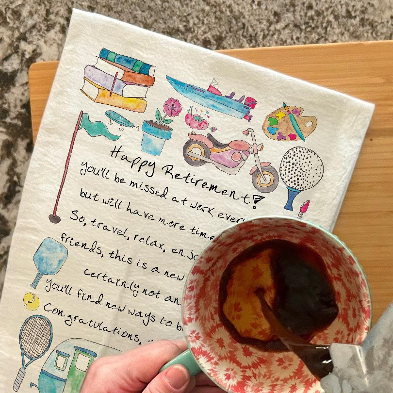 Retirement: less grind, more unwind. This playful towel toasts the good life with humor and coastal vibes—perfect for coworkers, friends, or that relative who traded meetings for mai tais.