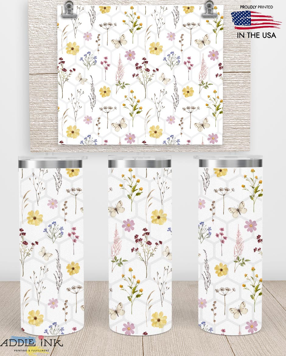 White Butterflies & Wildflowers 20oz Skinny Stainless Tumbler
