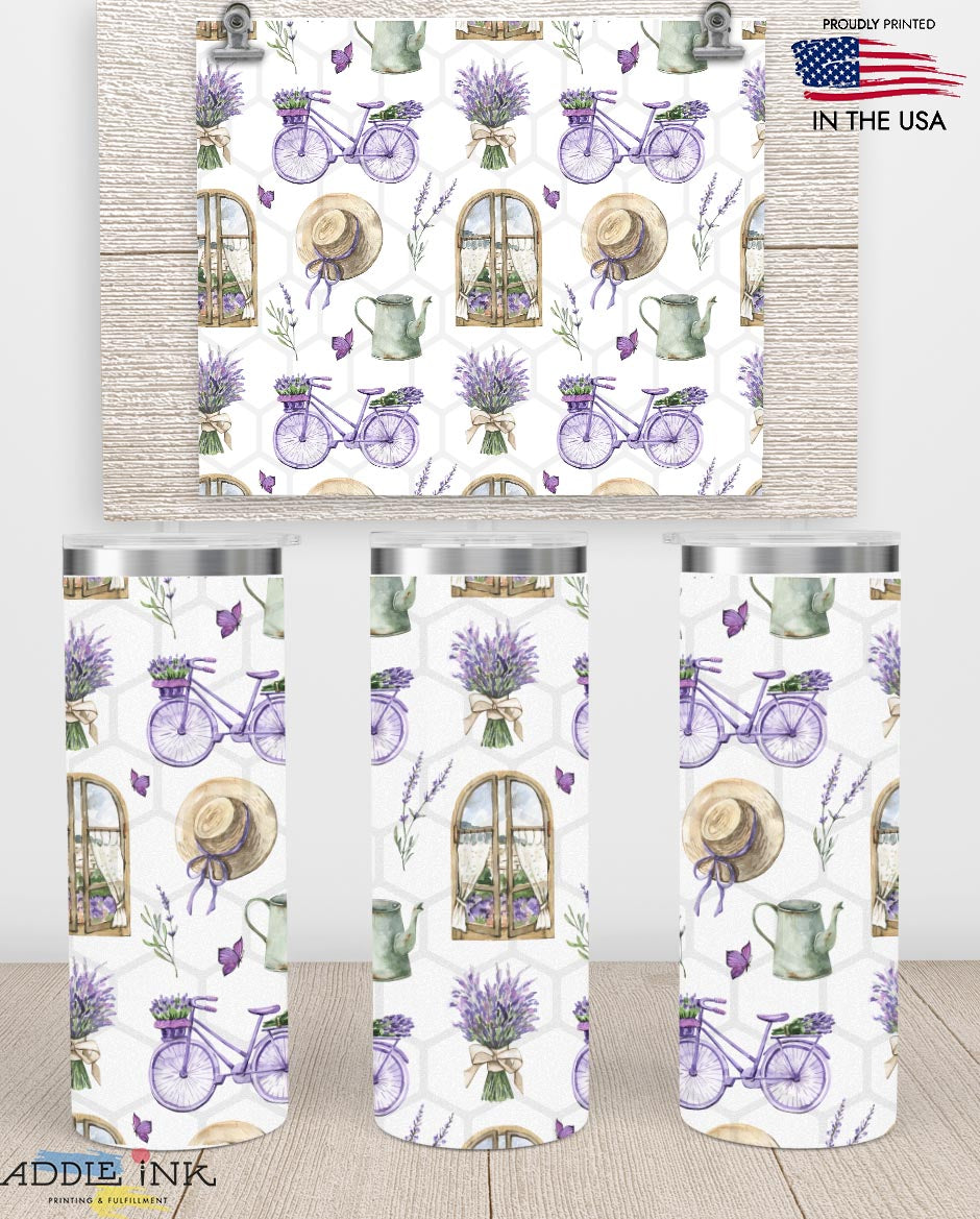 Lavender Gardening Bicycle 20oz Skinny Stainless Tumbler
