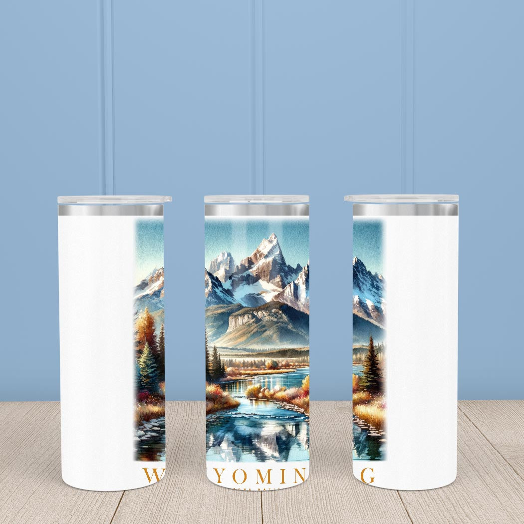 Wyoming Landmark & Landscape Watercolor 20oz Skinny Tumbler