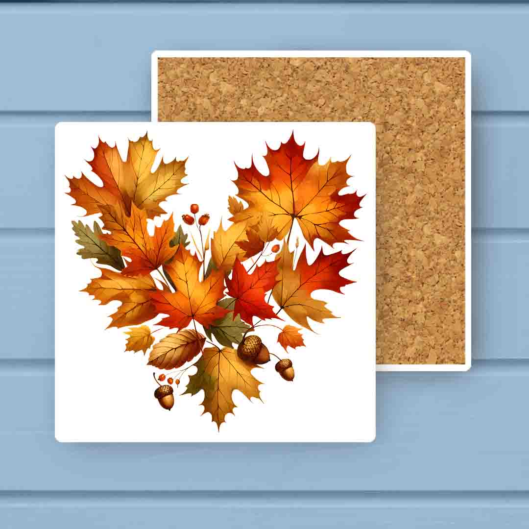 Fall in Love Leaf Heart Absorbant Stone Coaster