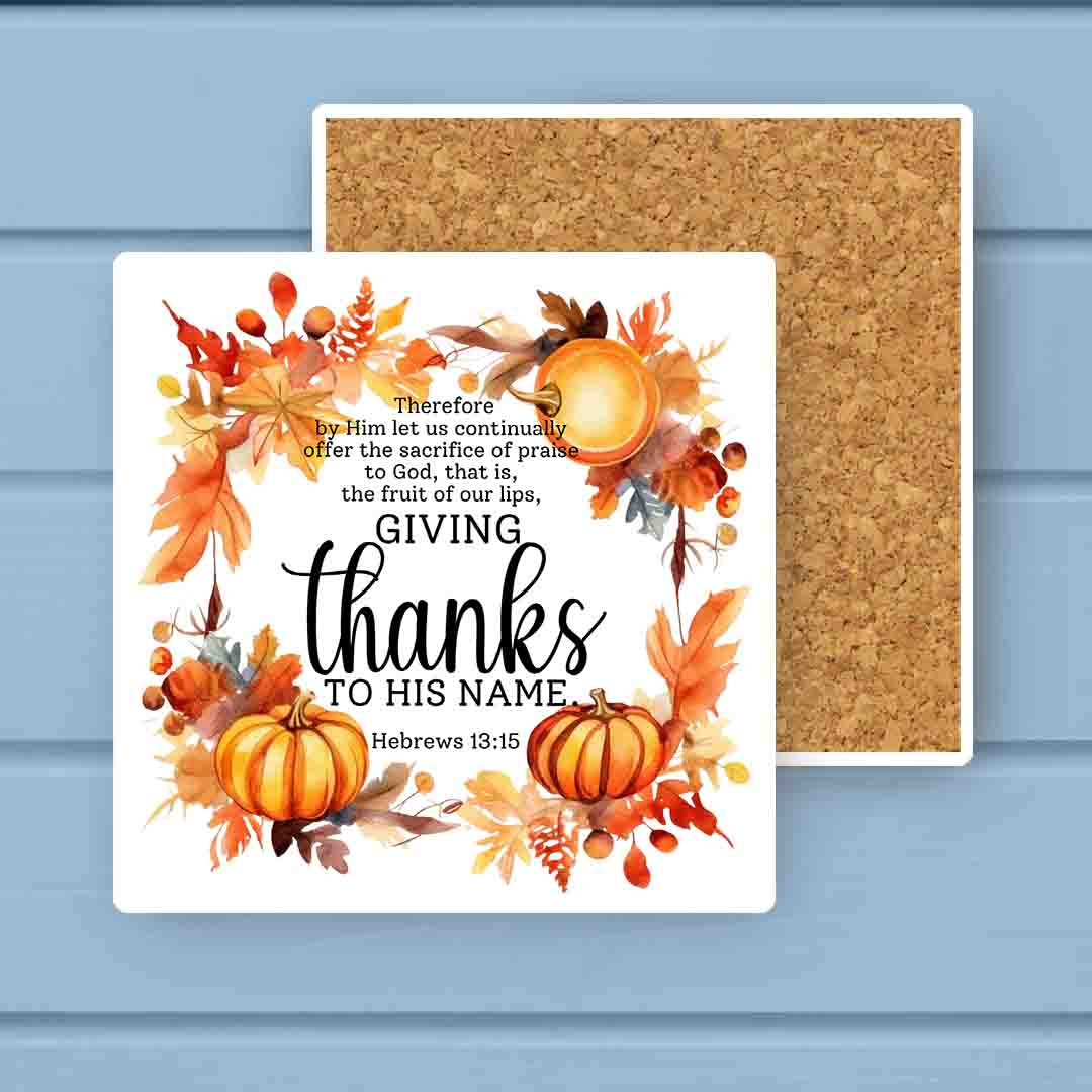 Giving Thanks to HIS Name Fall Pumpkin Wreath Stone Coaster