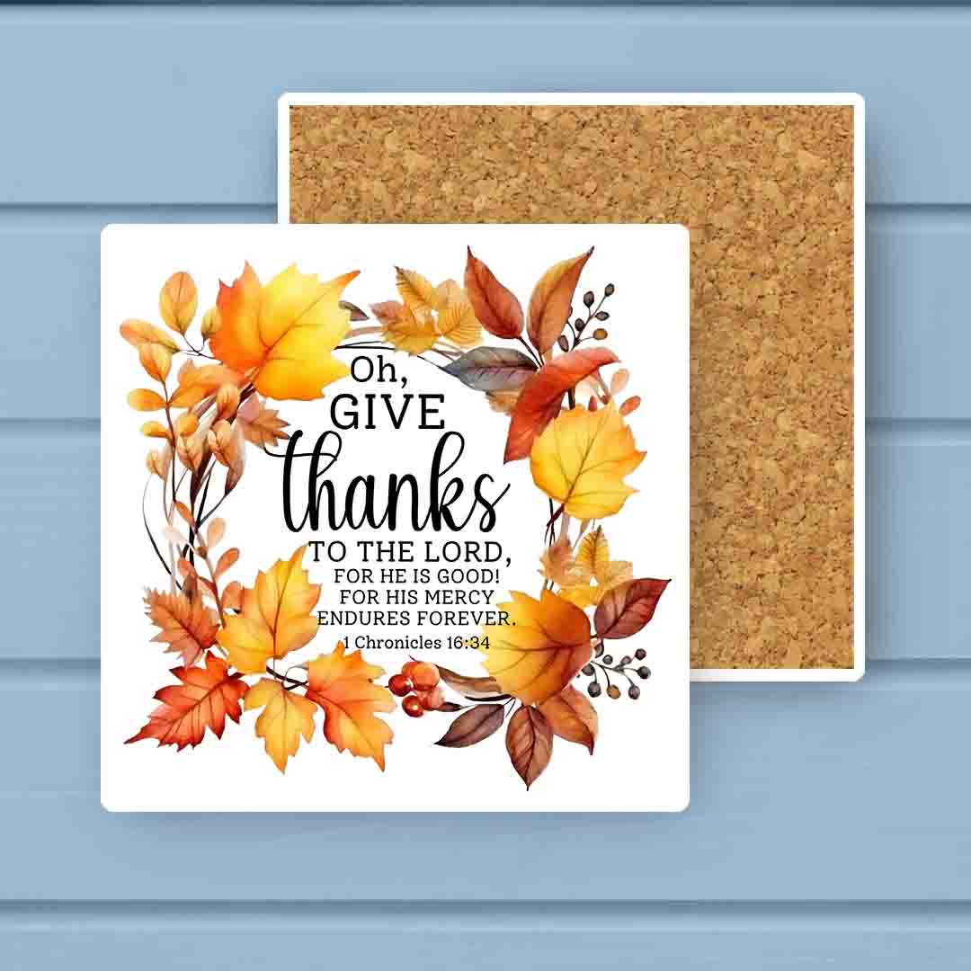 Oh Give Thanks to the LORD Autumn Wreath Stone Coaster