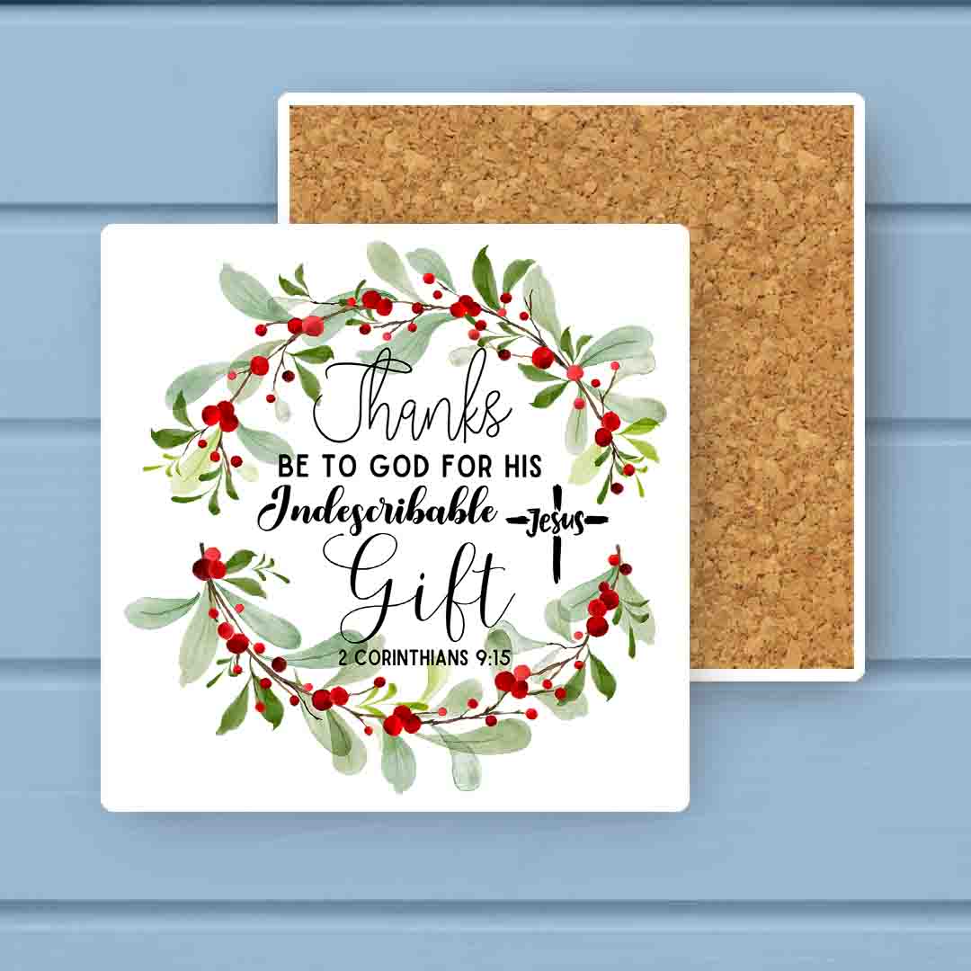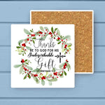 Thanks be to GOD for HIS Gift Christmas Wreath Stone Coaster