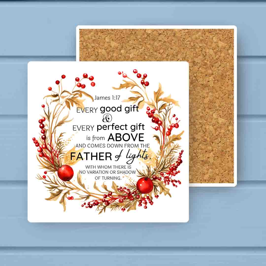 Tags: Stoneware, Ceramic Coaster, Square Coaster, Stone Coaster, Absorbent Coaster, Dolomite, Home Decor, Kitchen Décor, Barware, Tabletop, Winter, Christmas, Holiday Season, Scripture, Christianity, Bible, JamesQuote.