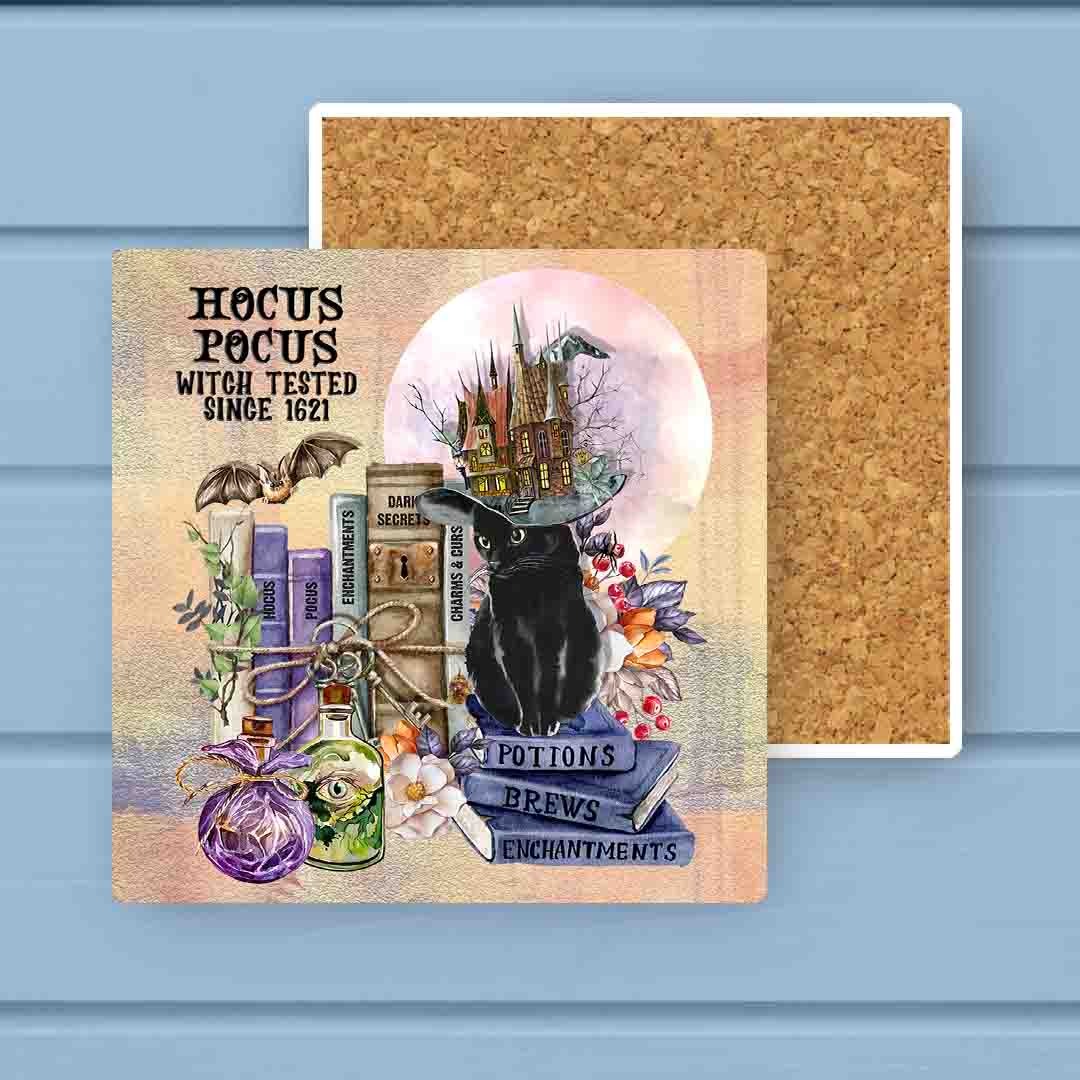 Black Cat Approved Spellbooks Halloween Stone Coaster