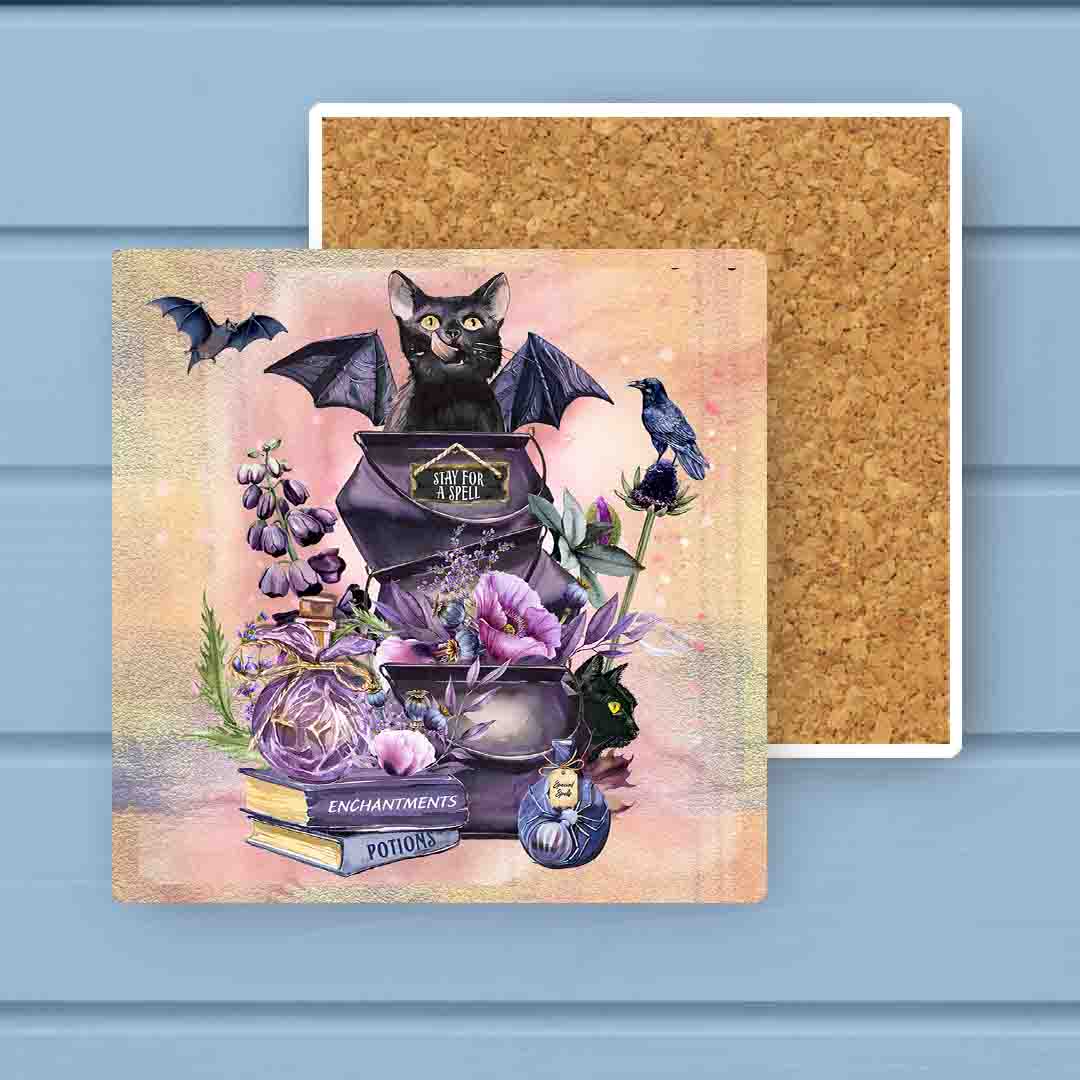 Black Cat Salem Sanctuary Halloween Absorbant Stone Coaster