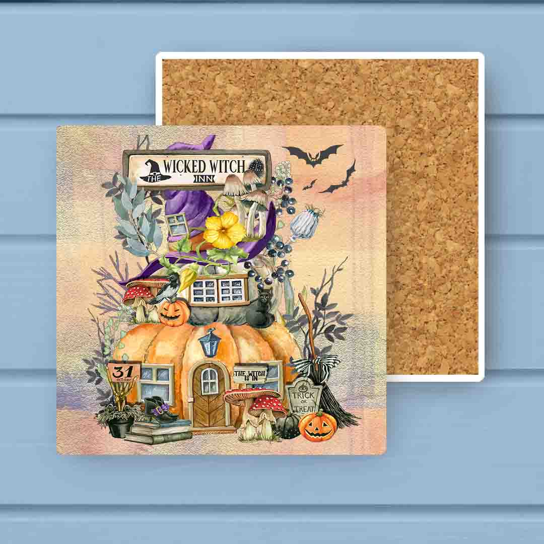 Wicked Witch Pumpkin Halloween House Absorbant Stone Coaster