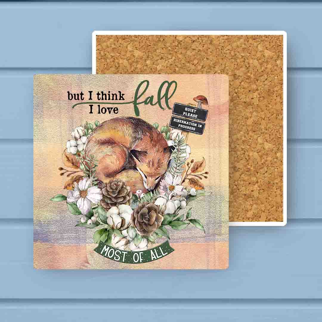 I love Fall Most of All Sleeping Fox & Pup Stone Coaster